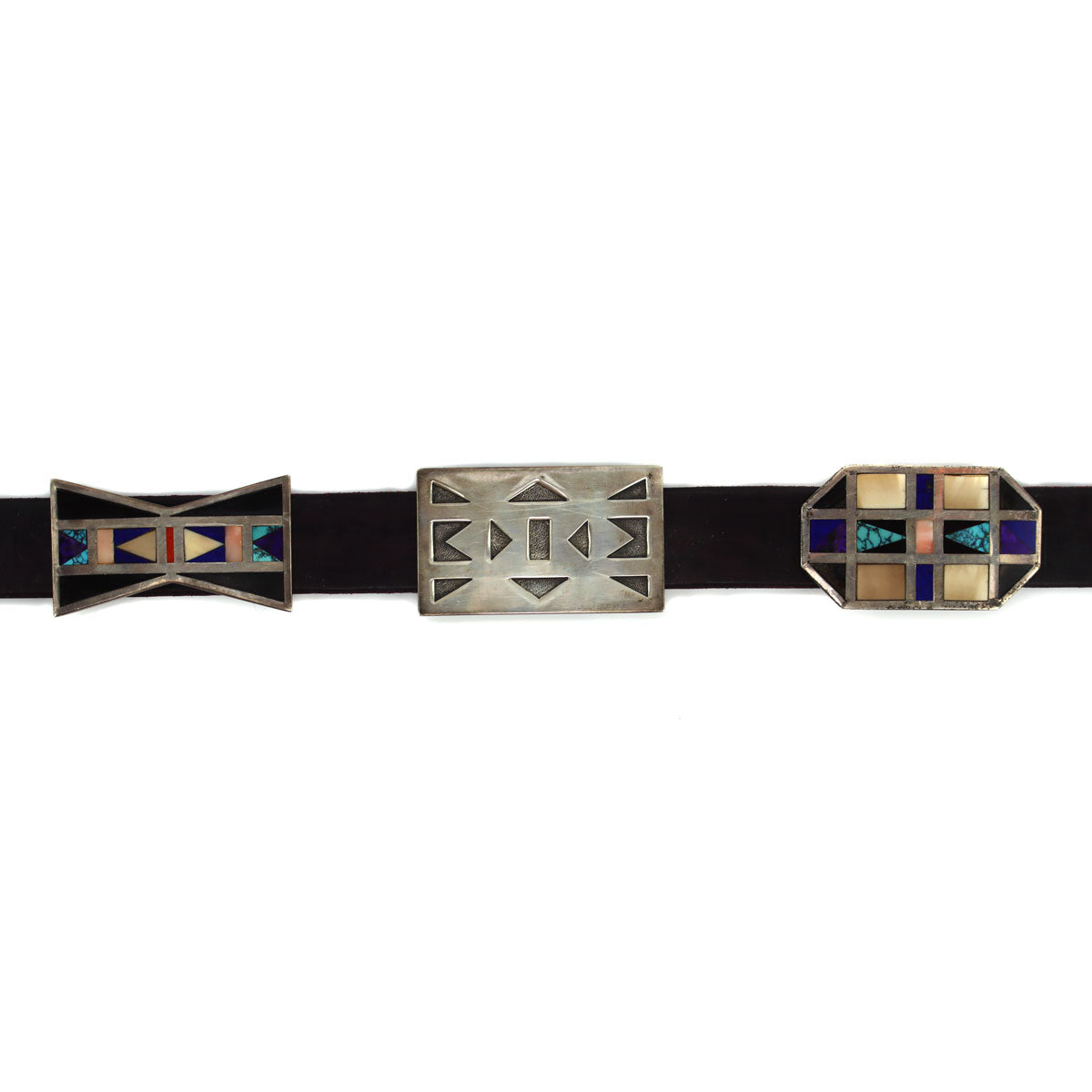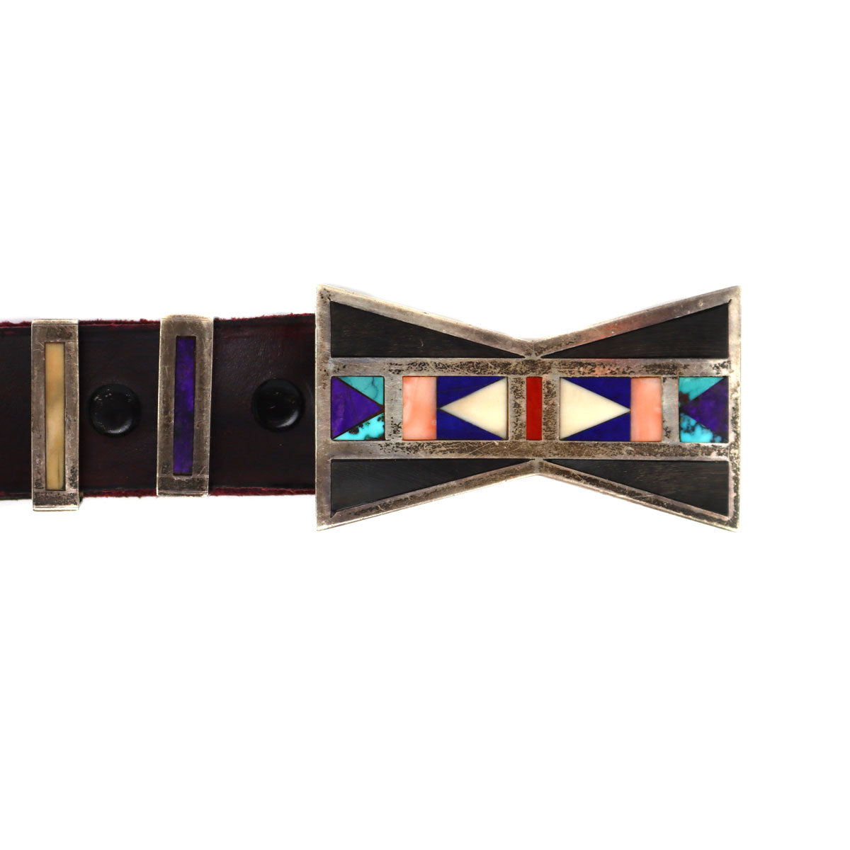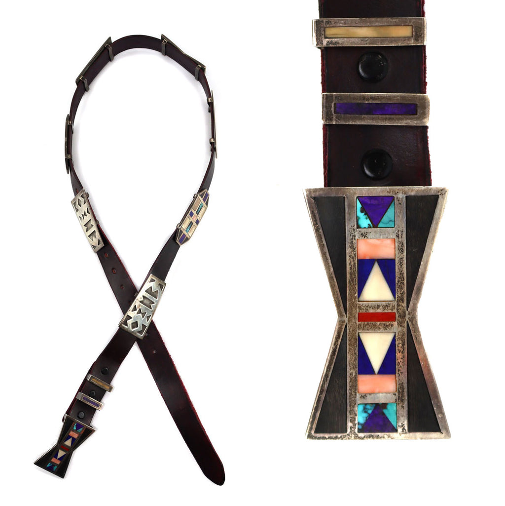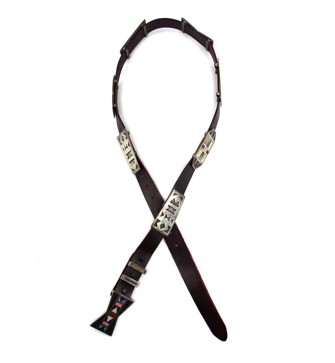 Robert Gress - Crow - Multi-Stone, Silver, and Leather Belt c. 1990s, 32"-37" waist (J15874-CO-010)
