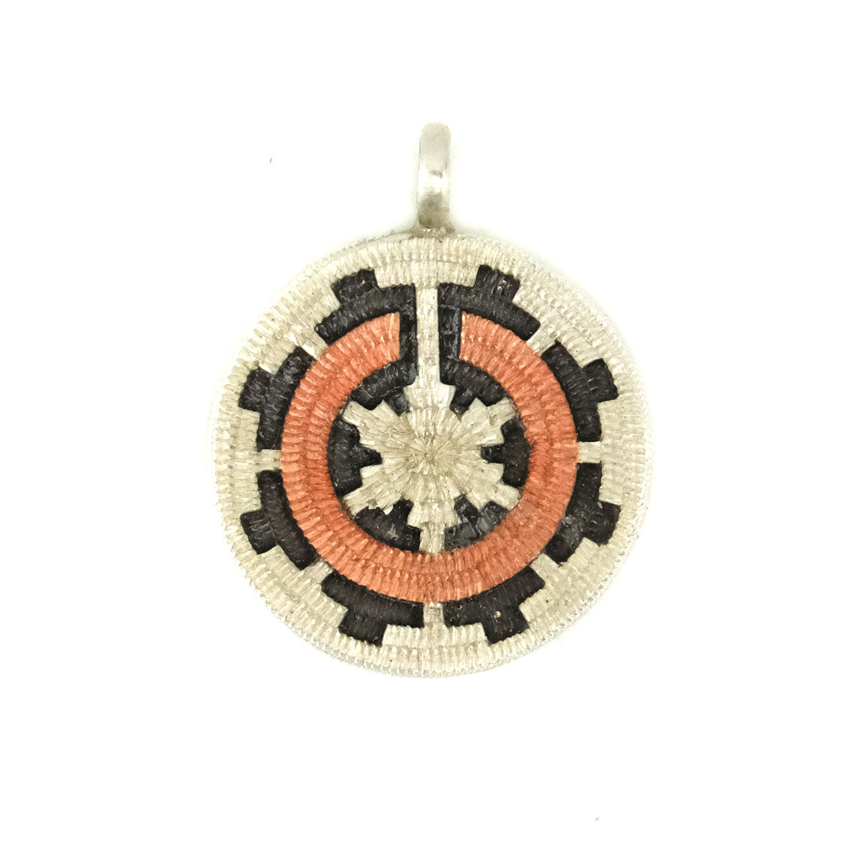 Roland Begay - Contemporary Navajo Sterling Silver and Copper Overlay Wedding Basket Pendant, 0.875" x 0.75"
