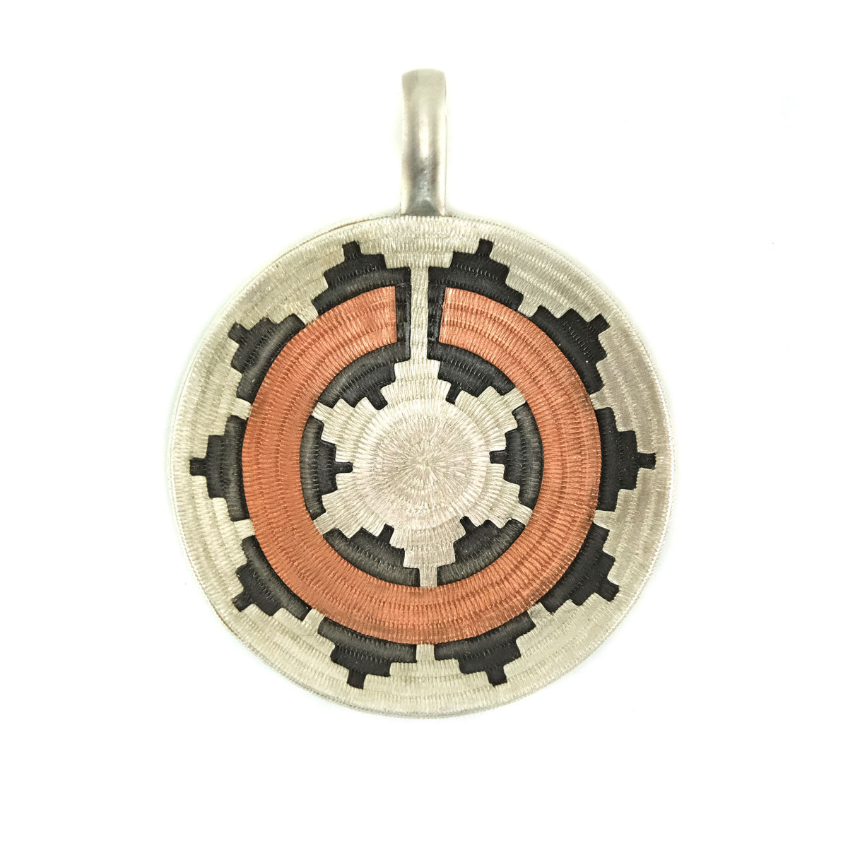 Roland Begay - Contemporary Navajo Sterling Silver and Copper Overlay Wedding Basket Pendant, 2.5" x 2"