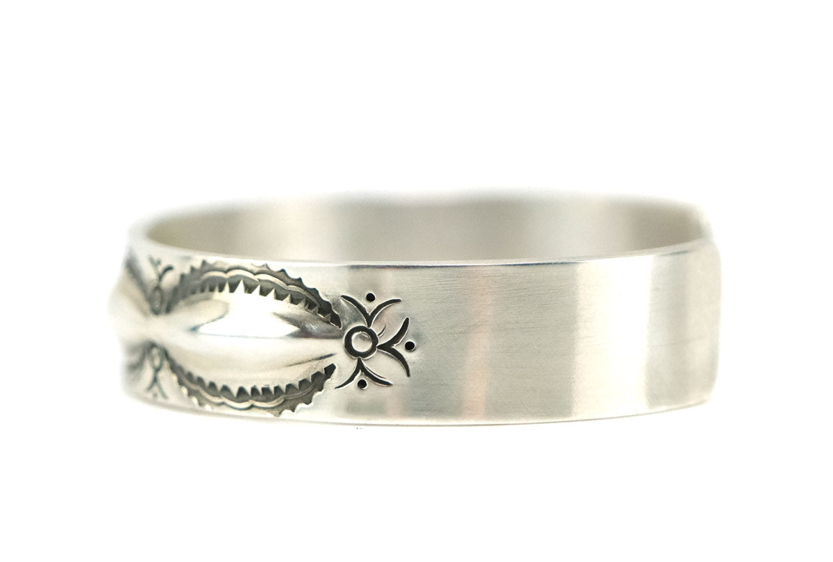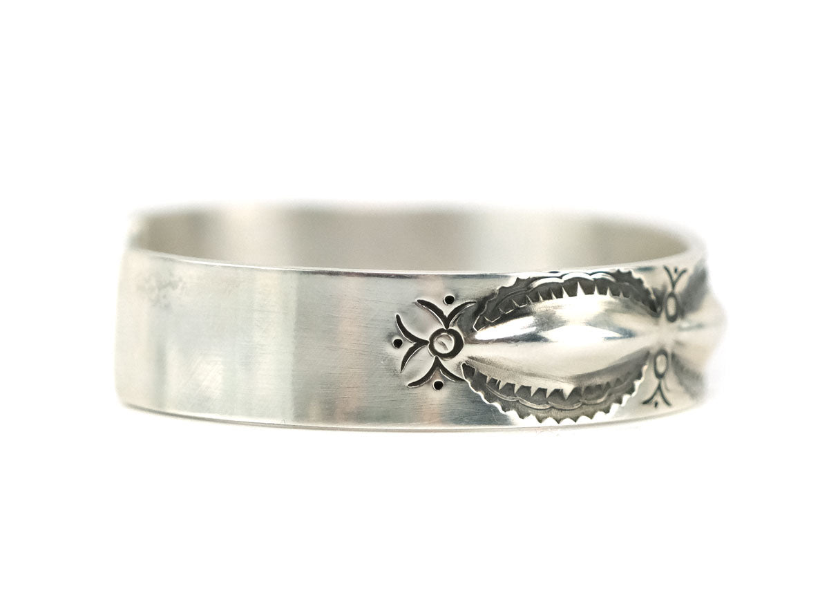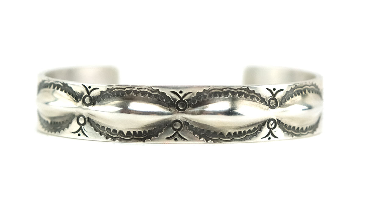 Roland Begay - Contemporary Navajo Sterling Silver Bracelet with Stamped Design, size 7