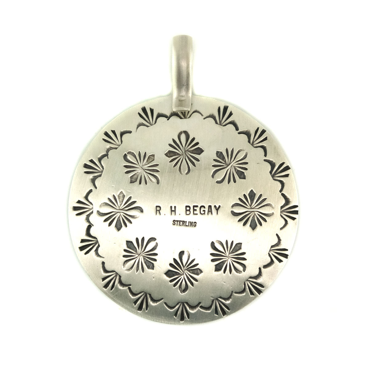 Roland Begay - Navajo Contemporary Sterling Silver Overlay Squash Blossom Pendant with Reversed Design, 2.5" x 2"