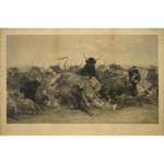 34.5" x 48" framed. Has foxing throughout. Acquired from a private collection in Arizona. Rosa Bonheur was a famous 19th-century female artist known for her depiction of horses and for her eccentric lifestyle including sketching at the Paris slaughterhouse and dressing like a man. Rosa spent her life in France, but was associated with the American West as a collector of figures and animals. She had a set of prints by George Catlin. When Buffalo Bill Cody visited Paris in 1889, she was a frequent visitor to his Wild West Show and made numerous sketches of persons and animals in the show. She also did a full-length portrait of Cody, and into her later years, continued to do paintings of the American West. She received a gold medal in 1855 at the Exposition Universelle in Paris, a ribbon in 1865 of the Chevalier de la Legion d'Honneur from Empress Eugenie, and honorary membership in the Royal Academy of Watercolorists of London in 1885.