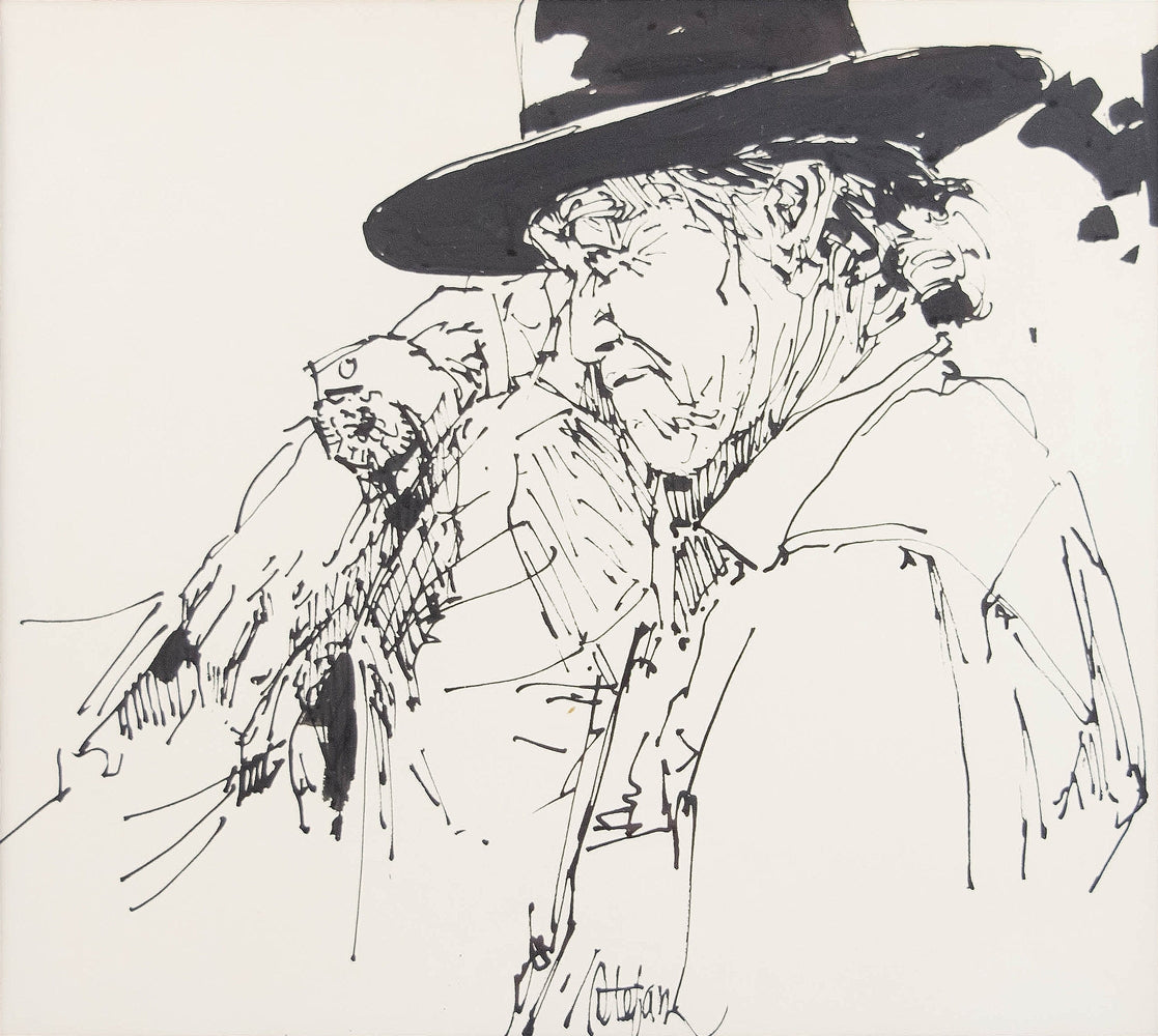 24" x 26" framed. Acquired from a private collection in Arizona. Ink Dry Brush on Paper