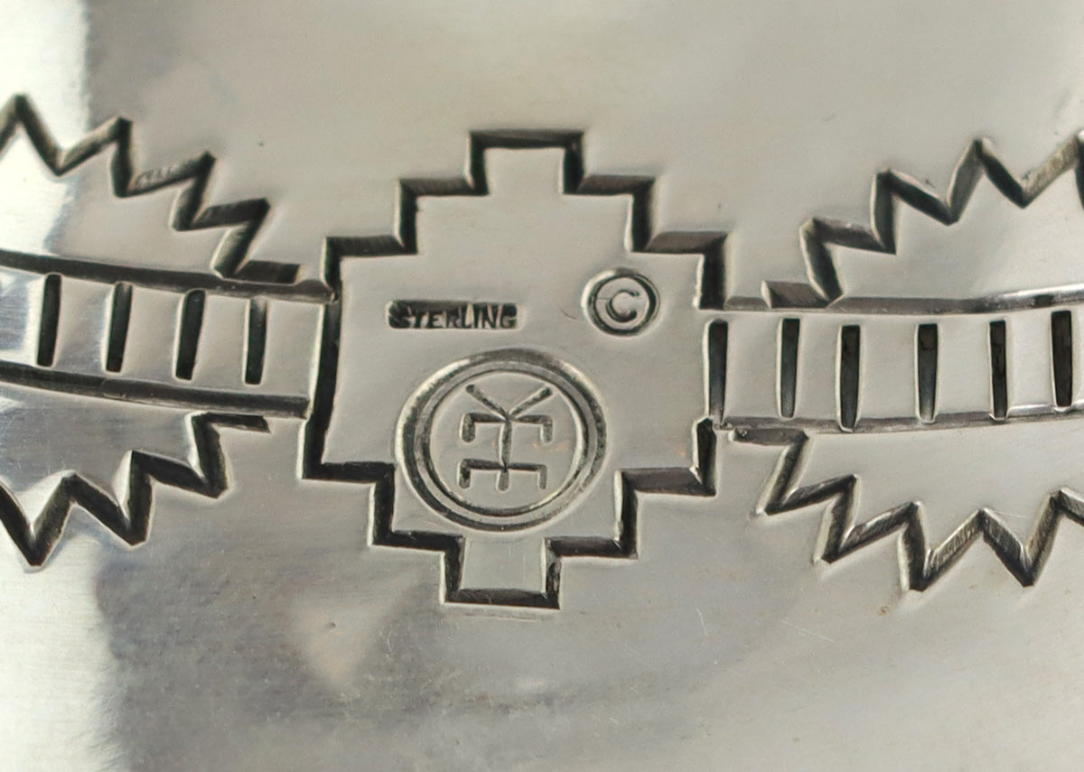 120.4g, 2" bandwidth, size 7 to include a gap of 1.25". Artist hallmark on verso.
