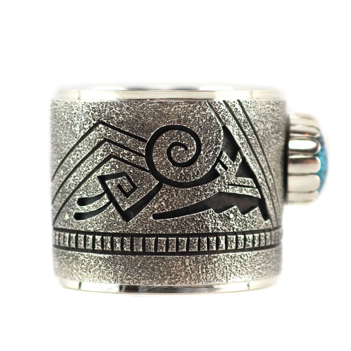 Roy Talahaftewa (b. 1955) - Hopi - Contemporary Turquoise and Sterling Silver Overlay Bracelet with Multi-Stone Accents, size 6.625