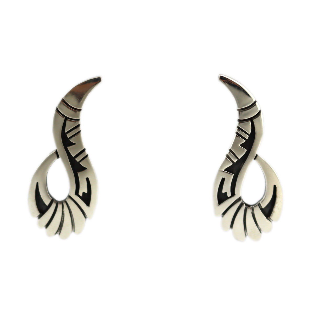 Roy Talahaftewa - Hopi - Contemporary Silver Overlay Post Earrings, 1.5" x 0.625"