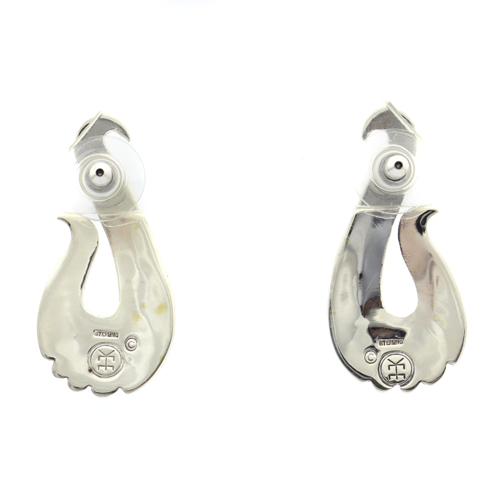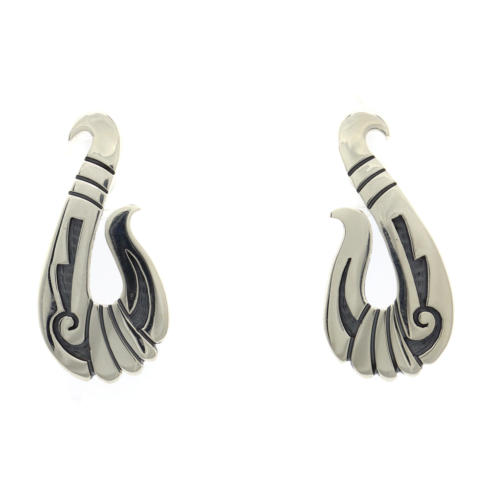 Roy Talahaftewa - Hopi Contemporary Sterling Silver Overlay Post Earrings, 1.5" x 0.75" (J12431)