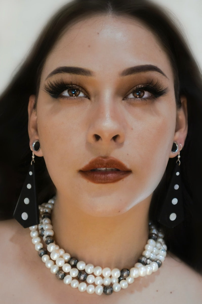 Ryan Gashweseoma - Hopi Contemporary Mother of Pearl and Wood Hook Earrings, 3.125" x 1.375" (J15249)