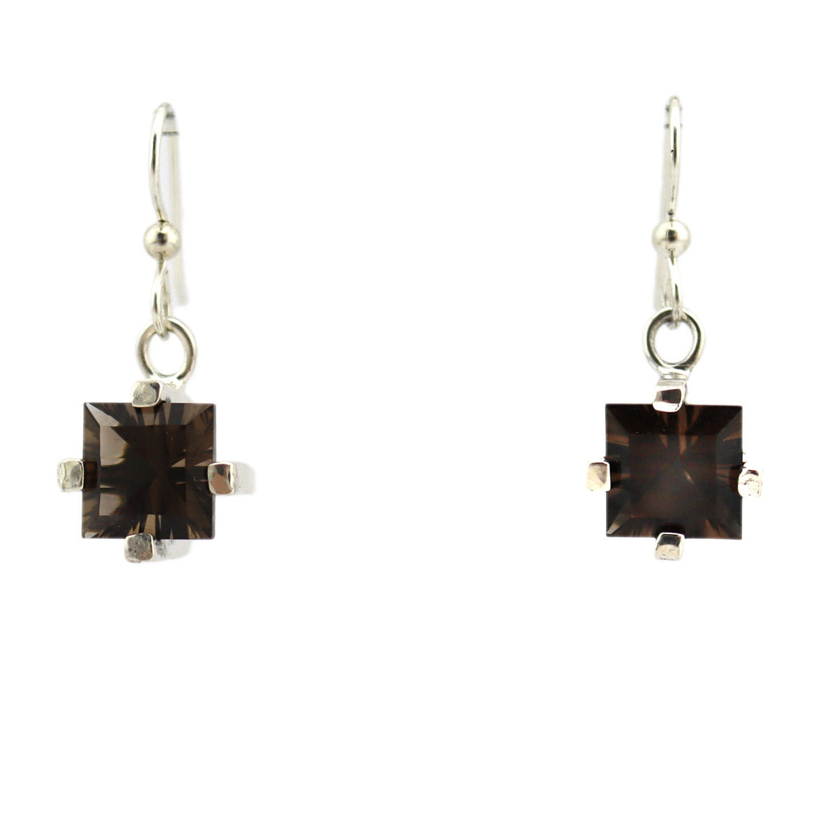 Sam Patania - "Dream Square Earrings" Smoky Quartz and Sterling Silver French Hook Earrings, 1.25" x 0.625"