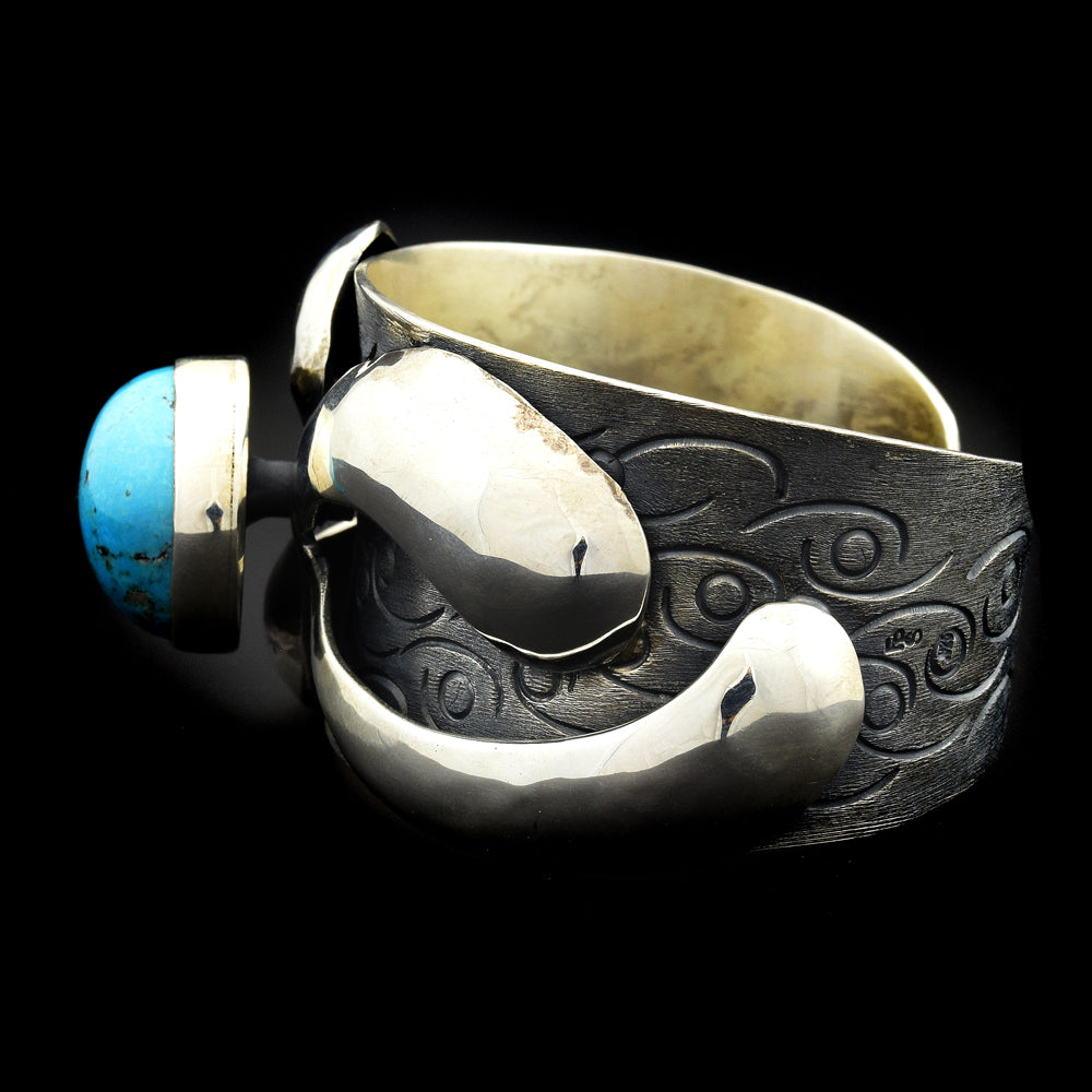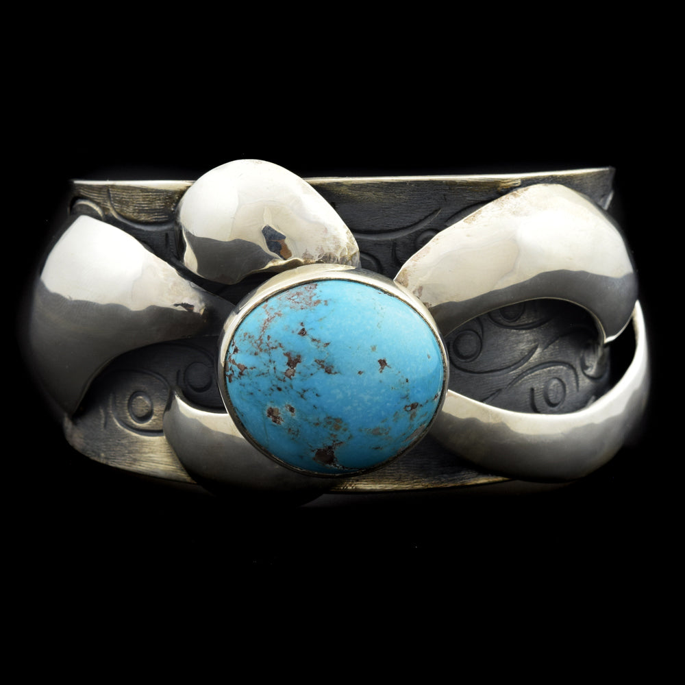 Sam Patania - Contemporary Couture Bisbee Turquoise and Silver Bracelet, size 6.75 (J91699-0819-001)