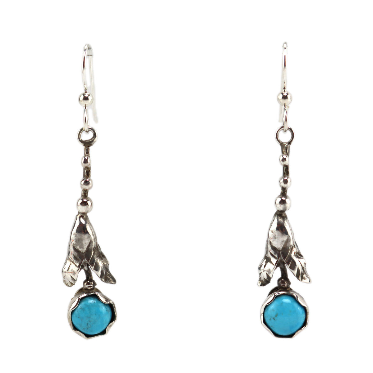 Sam Patania - Contemporary Sleeping Beauty Turquoise and Sterling Silver Blossom French Hook Earrings, 2.25" x 0.5"