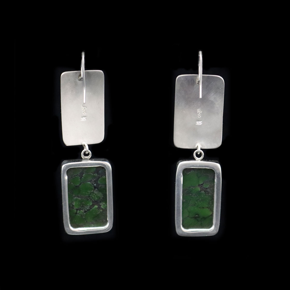 Sam Patania - "Earth Earrings" Couture Hubei (Chinese) Turquoise and Sterling Silver Hook Earrings, 2.5" x 0.25" (J91699-0421-002)