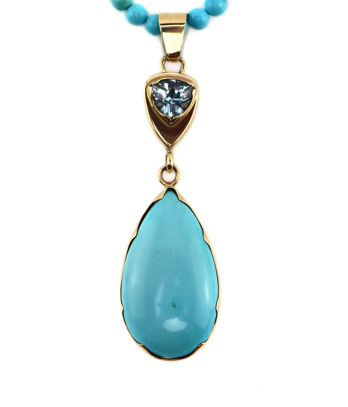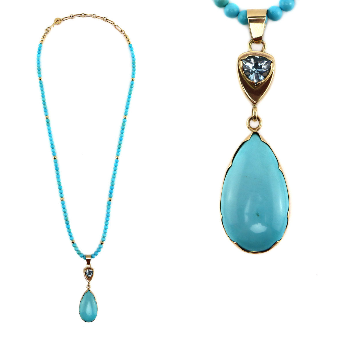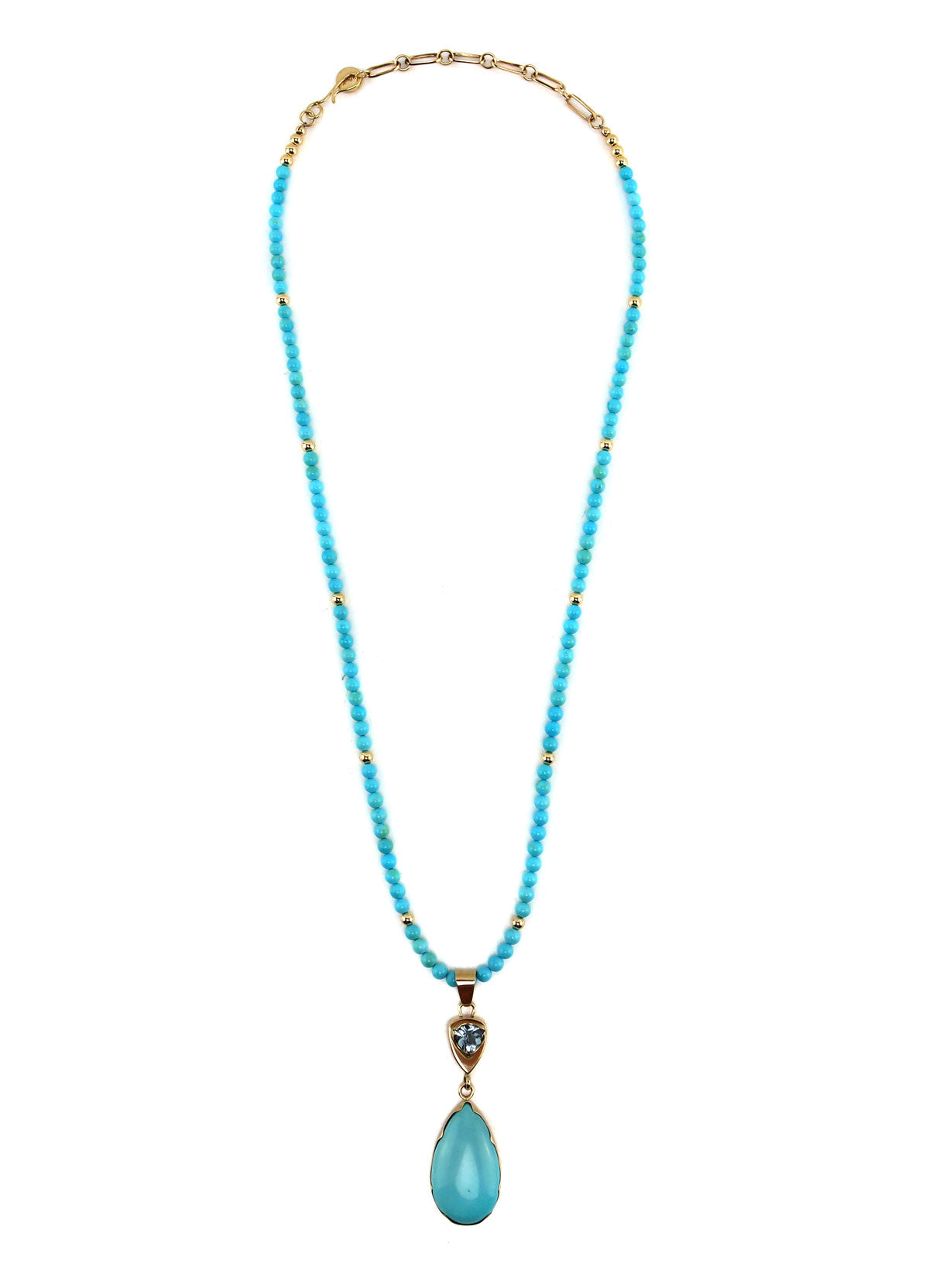 Sam Patania - "Natural Beauty" Contemporary Sleeping Beauty Turquoise, Aquamarine and 14K Gold Necklace, 24" length
