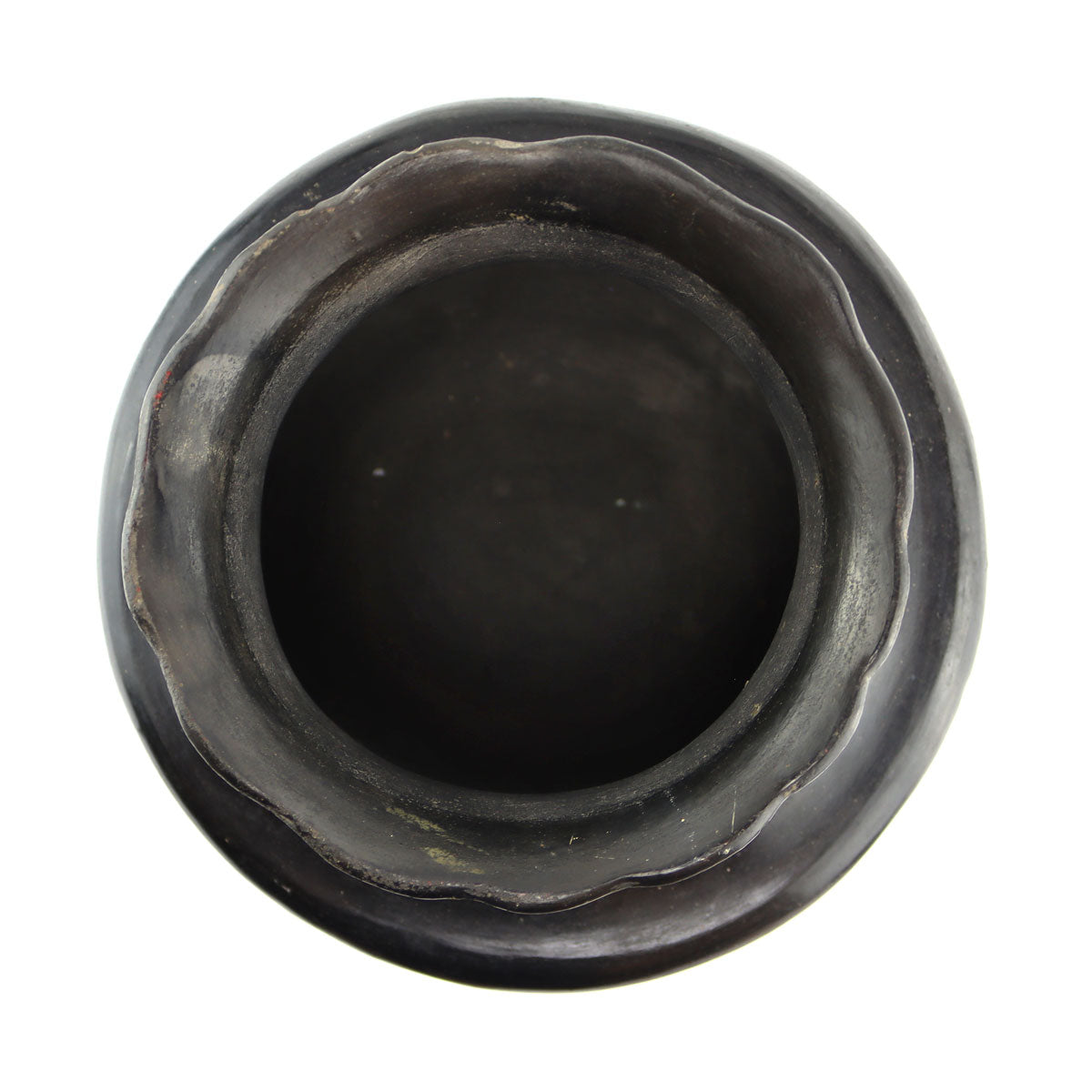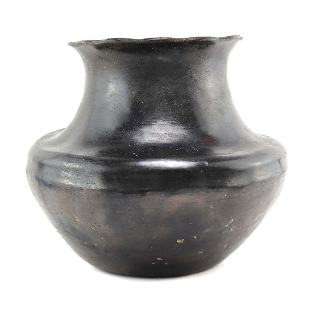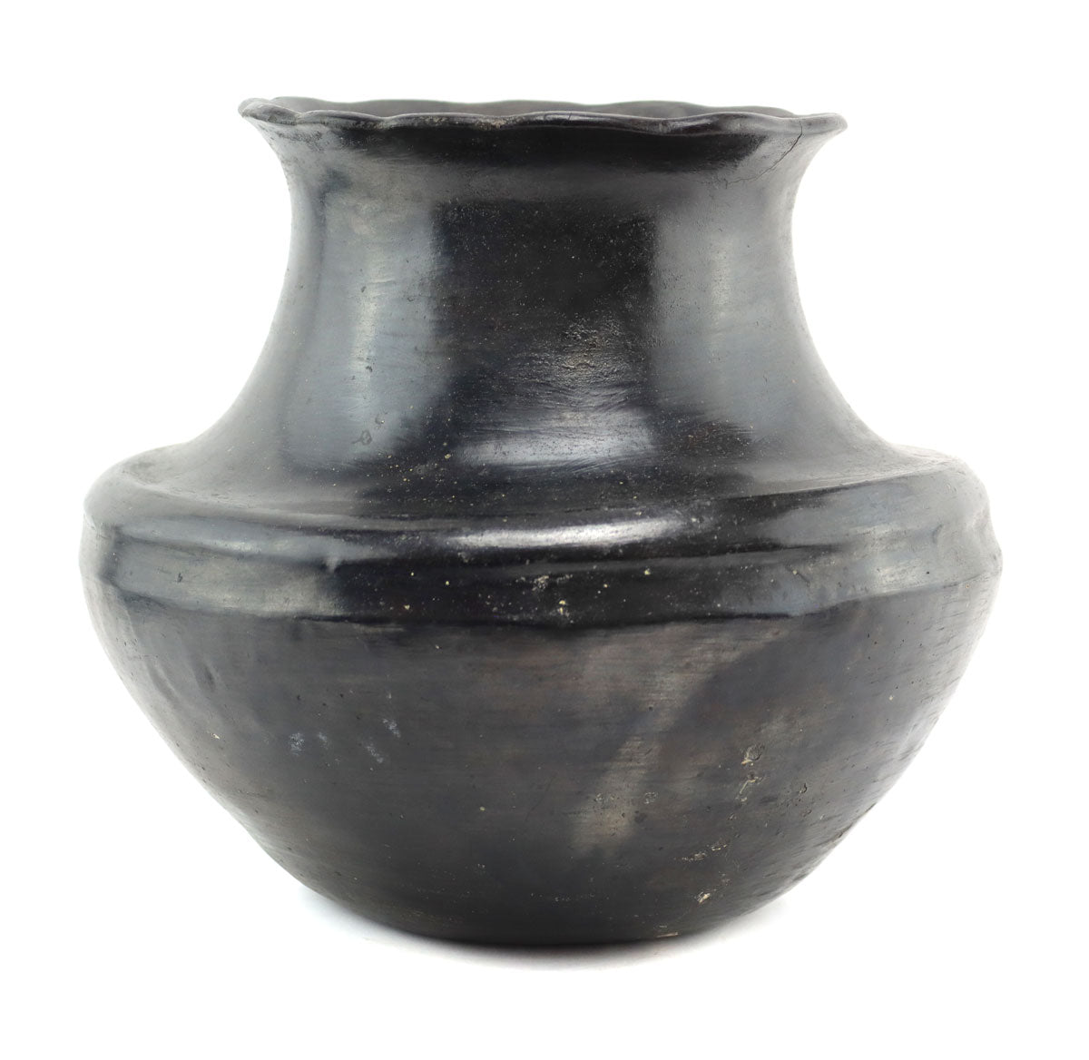 Santa Clara Black Water Jar with Fluted Rim c. 1890s, 9.25" x 10.5"