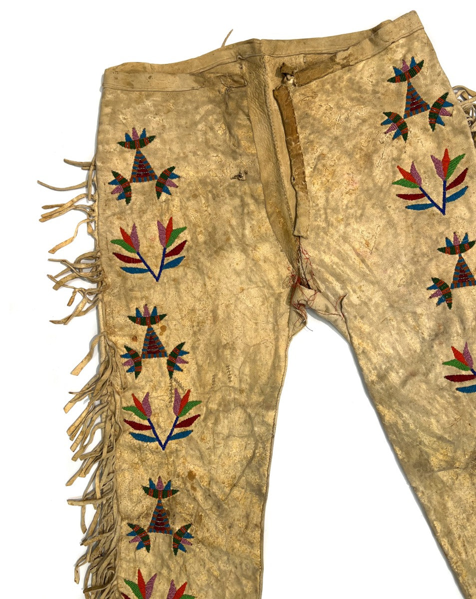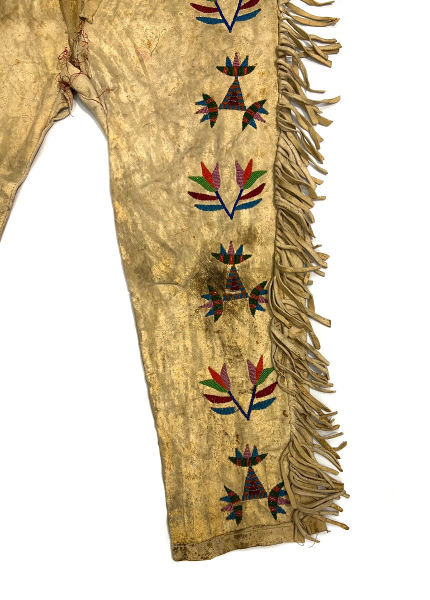 Santee Sioux Beaded Leather Pants with Floral Design c. 1890s, 35" x 16"