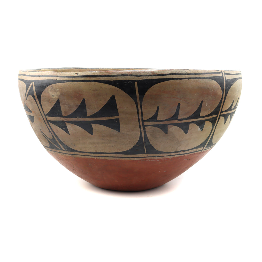 Santo Domingo (Kewa) Polychrome Dough Bowl c. 1930s, 8" x 15" (P91256-086-105)