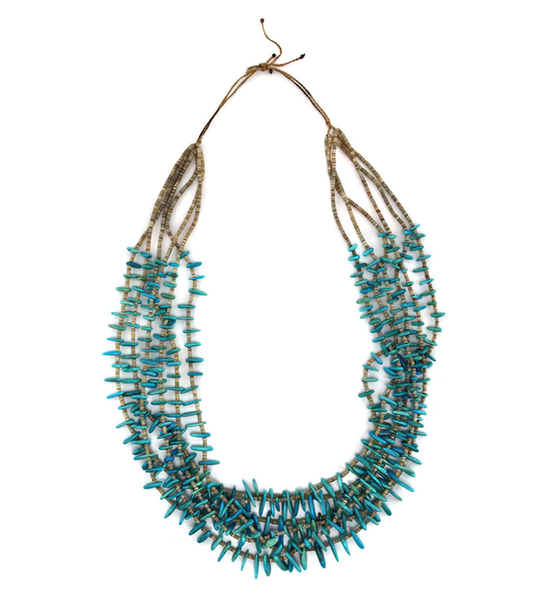 Santo Domingo (Kewa) - 6-Strand Heishi and Turquoise Necklace c. 1960-70s, 32" length