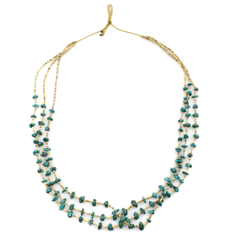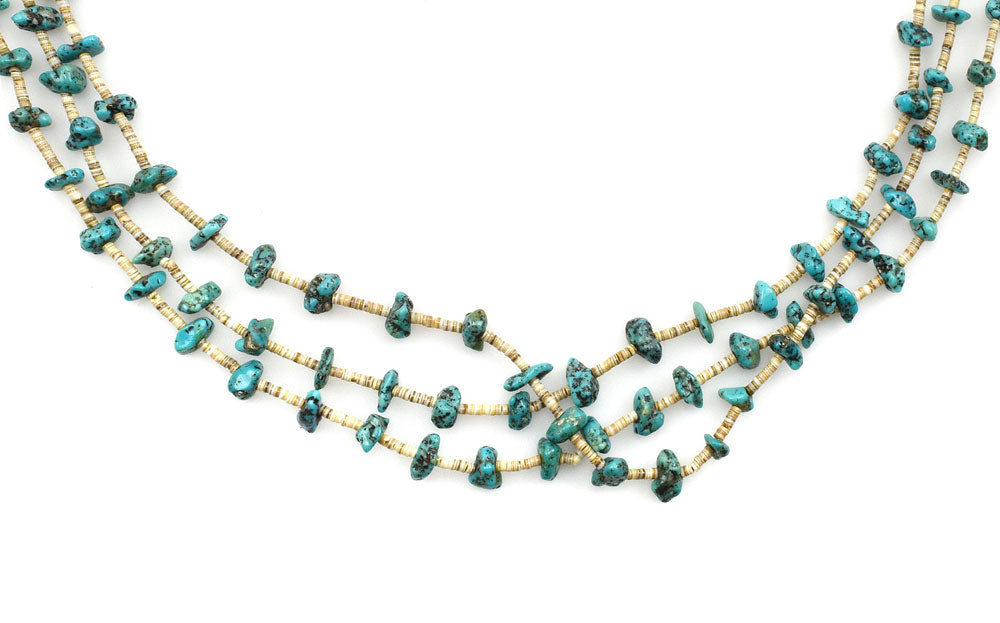 Santo Domingo (Kewa) Morenci Turquoise and Heishi Necklace c. 1970s, 35" length