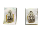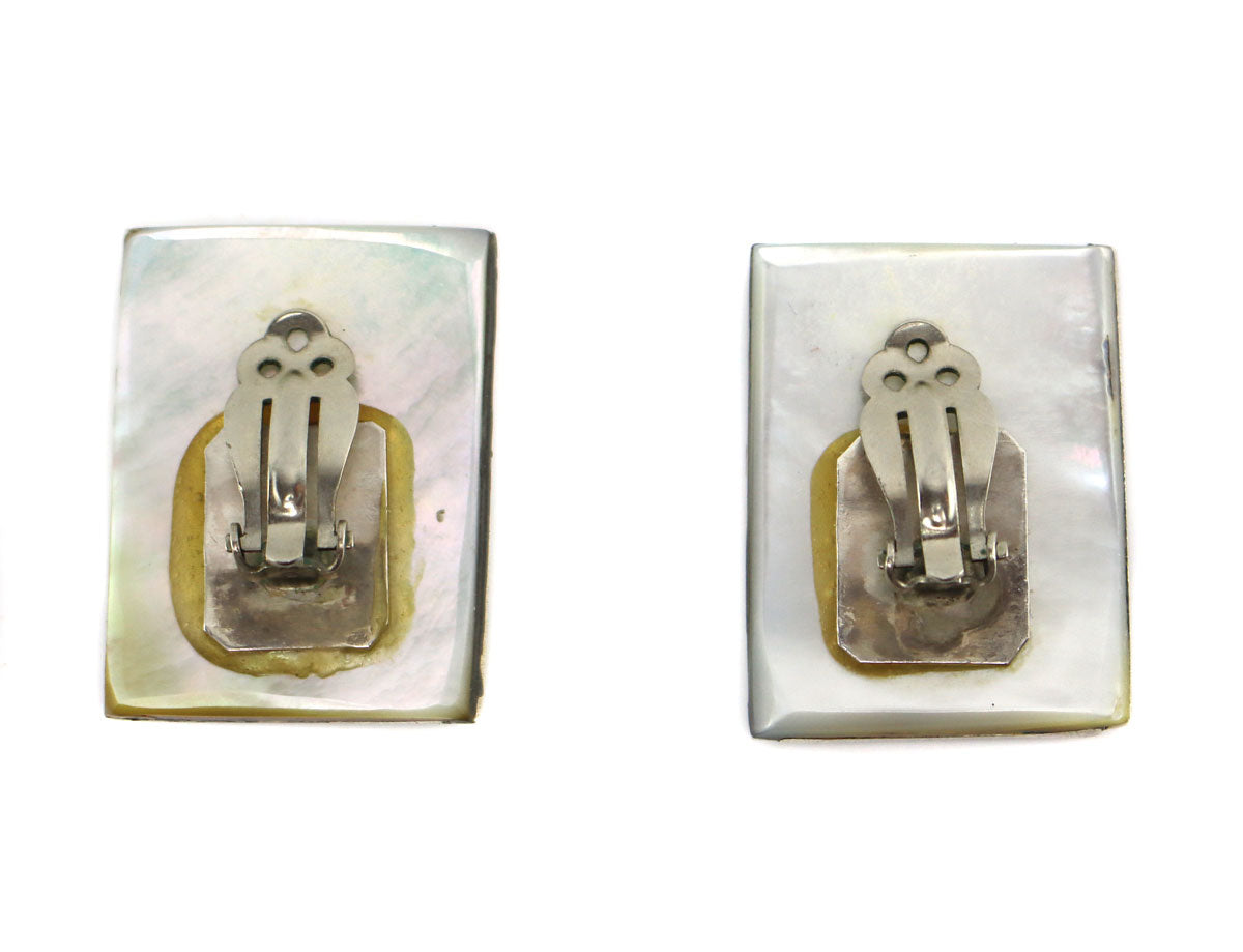 Santo Domingo (Kewa) - Multi-Stone Channel Inlay, Silver, and Mother of Pearl Clip-On Earrings c. 1970s, 1.5" x 1.125"
