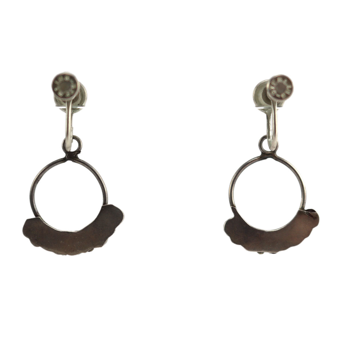 Zuni - Coral Petit Point and Silver Squash Blossom Necklace and Screw-back Earrings Set c. 1960-70s