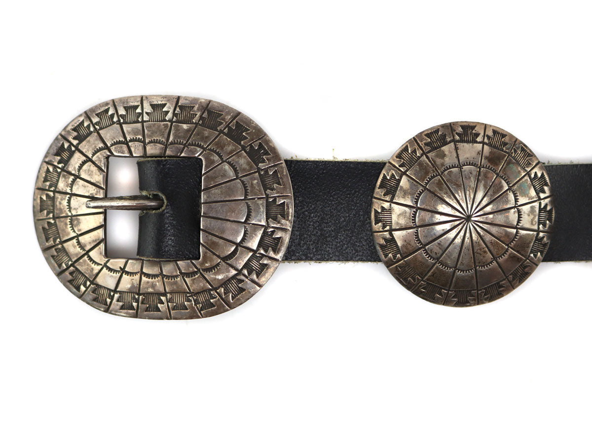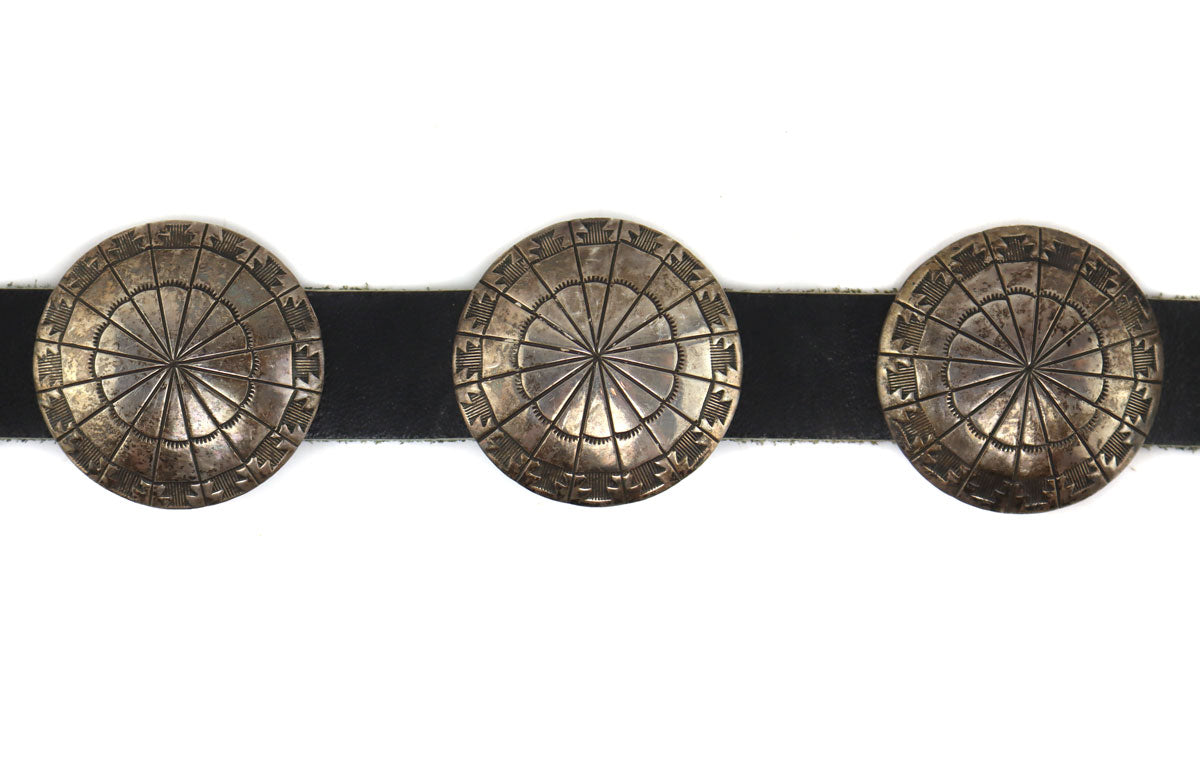 Sidney & Arlene Nez - Navajo - Sterling Silver and Leather Concho Belt c. 1980s, 30" - 32" size waist