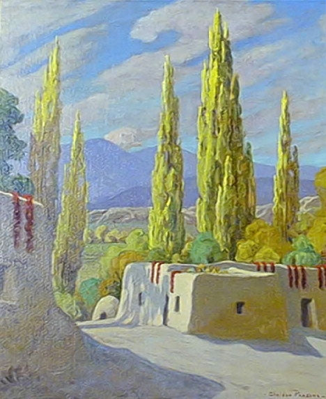 SOLD Sheldon Parsons (1866-1943) - Poplars and Chilis (Near San Juan, New Mexico)