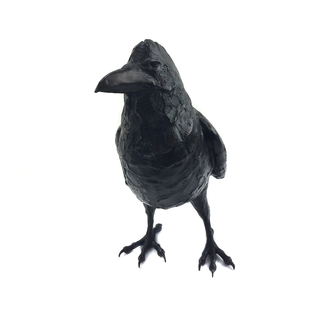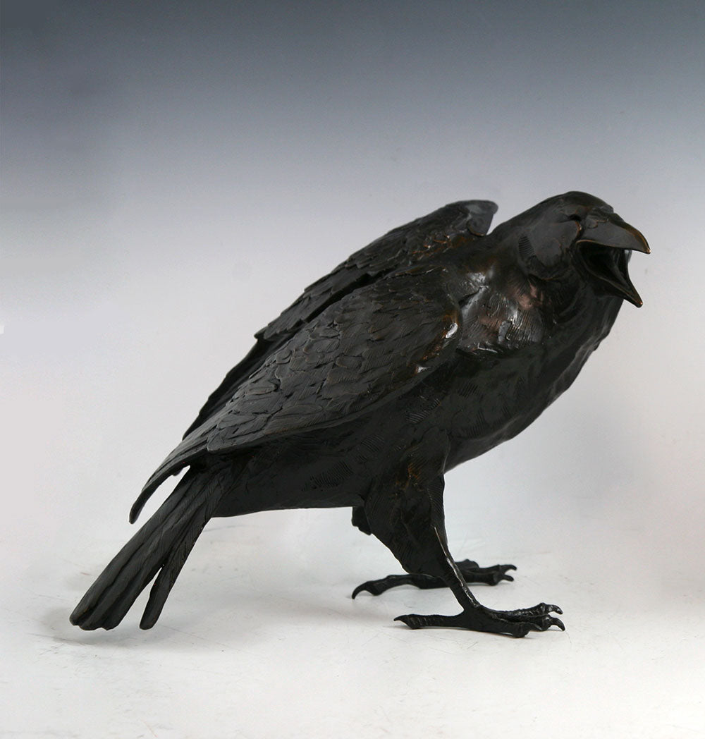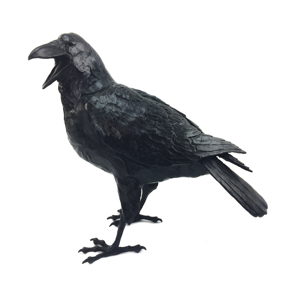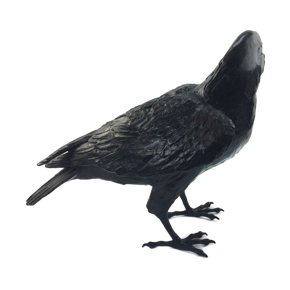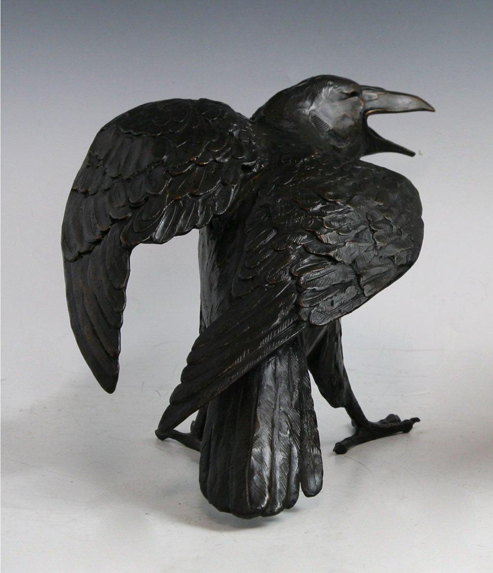 "'Raven' is defined in the dictionary as talk intended to charm or beguile, and idle chatter. These Ravens often visit the huge cottonwood outside my studio and begin an amazing array of vocalizations... chattering away until I come out to interact with them. They sometimes will perch on the telephone poles at the entrance to our ranch, and when I go out to ride will chatter as if they wish me to acknowledge their presence. Sometimes they will fly along with us on the ride... behavior which I find charming and beguiling indeed! At our ranch, we have noted that every year, the ravens begin to appear in a large flock. We have ravens around all year, but in early summer they come in droves and seem to have rather raucous meetings regularly, hanging out on our board fences for their palaver sessions." - Star Liana York