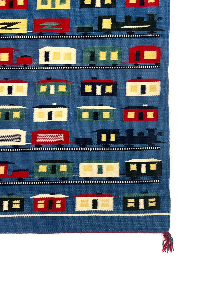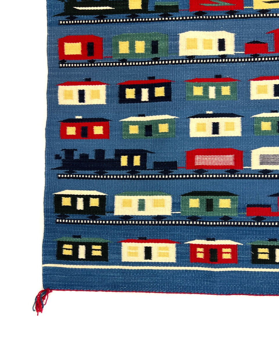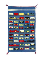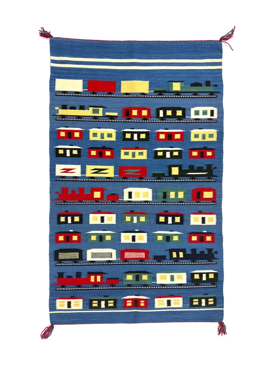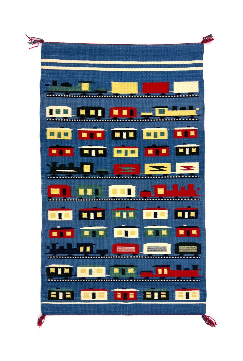 Susie Smith - Navajo Train Pictorial with Indigo and Cochineal Dyes c. 1980s, 52" x 32.25" (T90404A-0123-001)