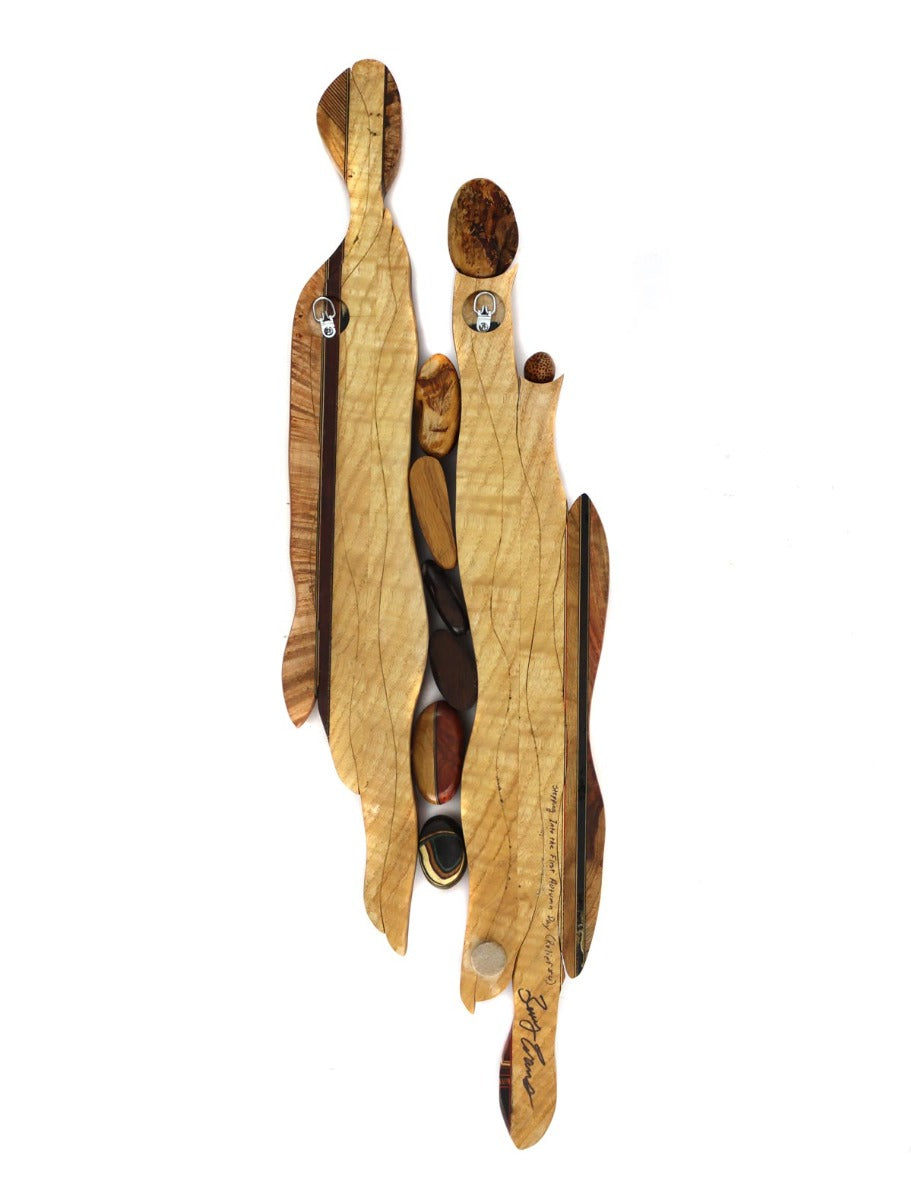 Description: Some of the woods included in this piece are bloodwood, honey locust, ipe, ash, tiger maple, birdseye maple, bog oak, white oak, amboyna burl, boxwood, black and white ebony, smoke tree, black ash burl, and various veneers both dyed and natural.