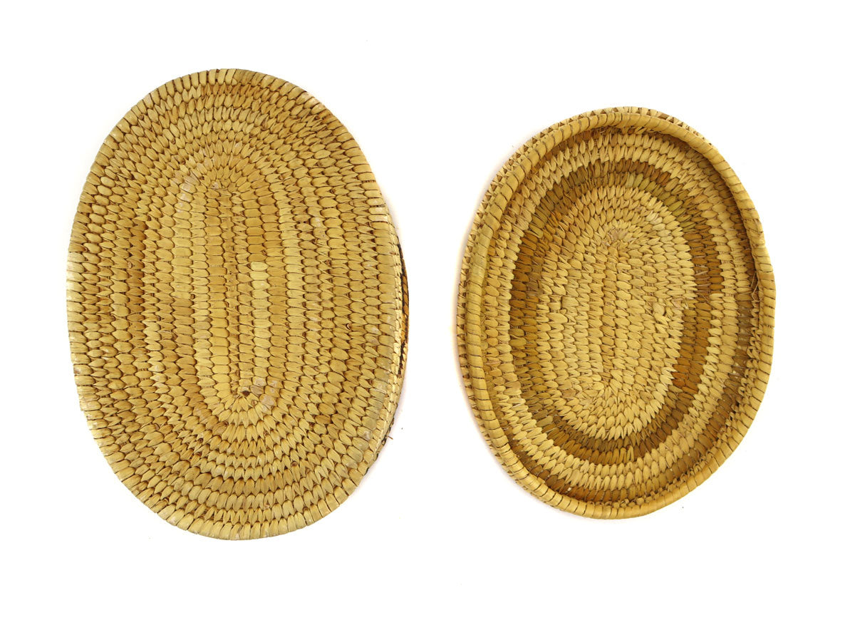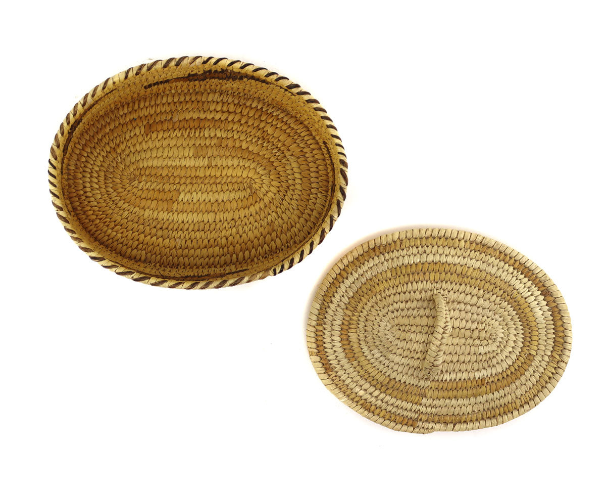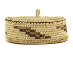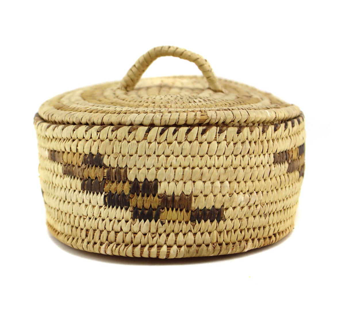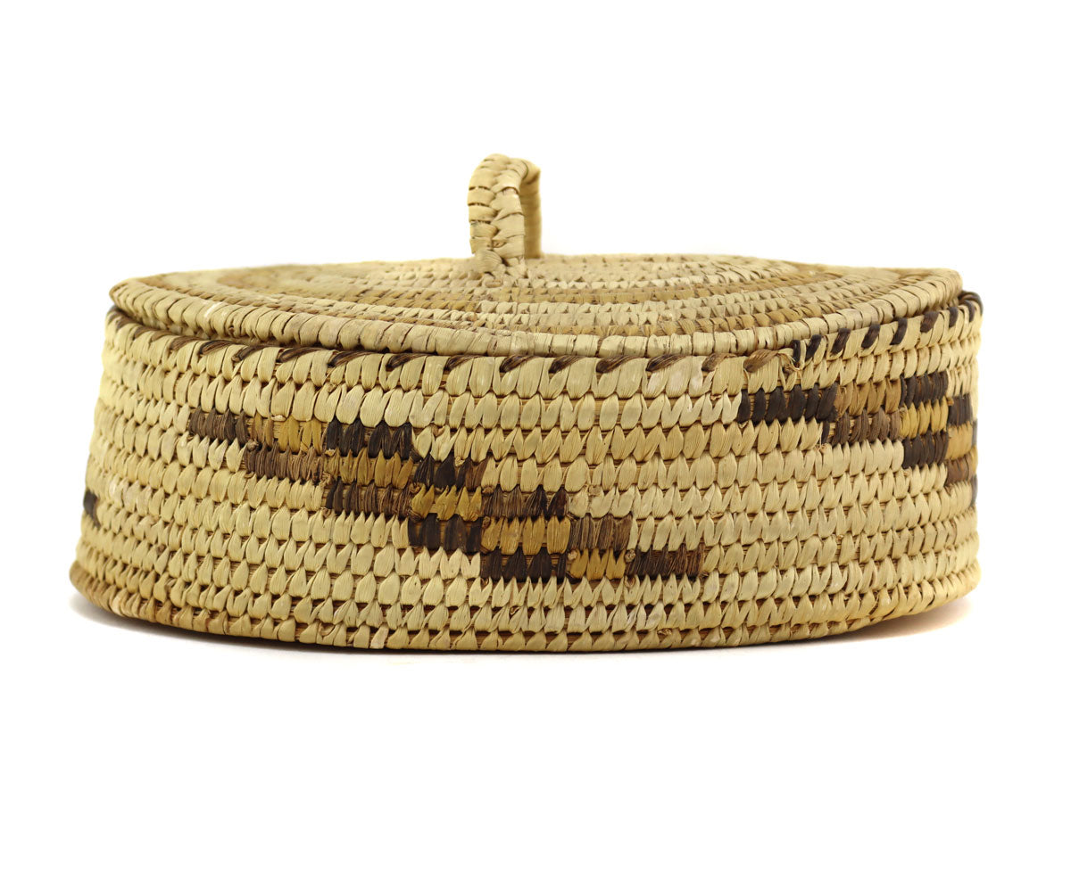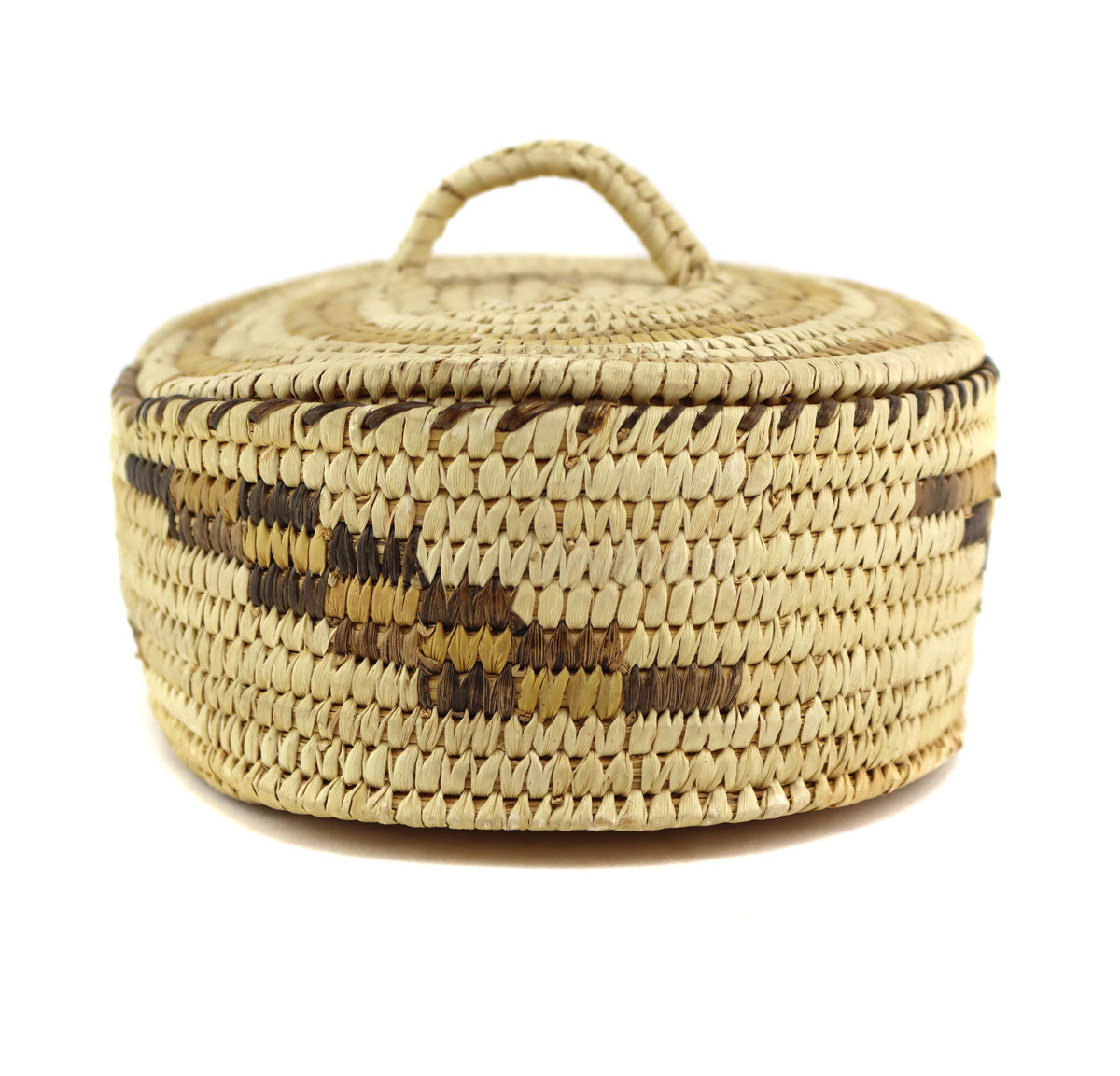 Tohono O'odham Polychrome Lidded Oval Basket with Handle c. 1960s, 4.25" x 6" x 8.75"