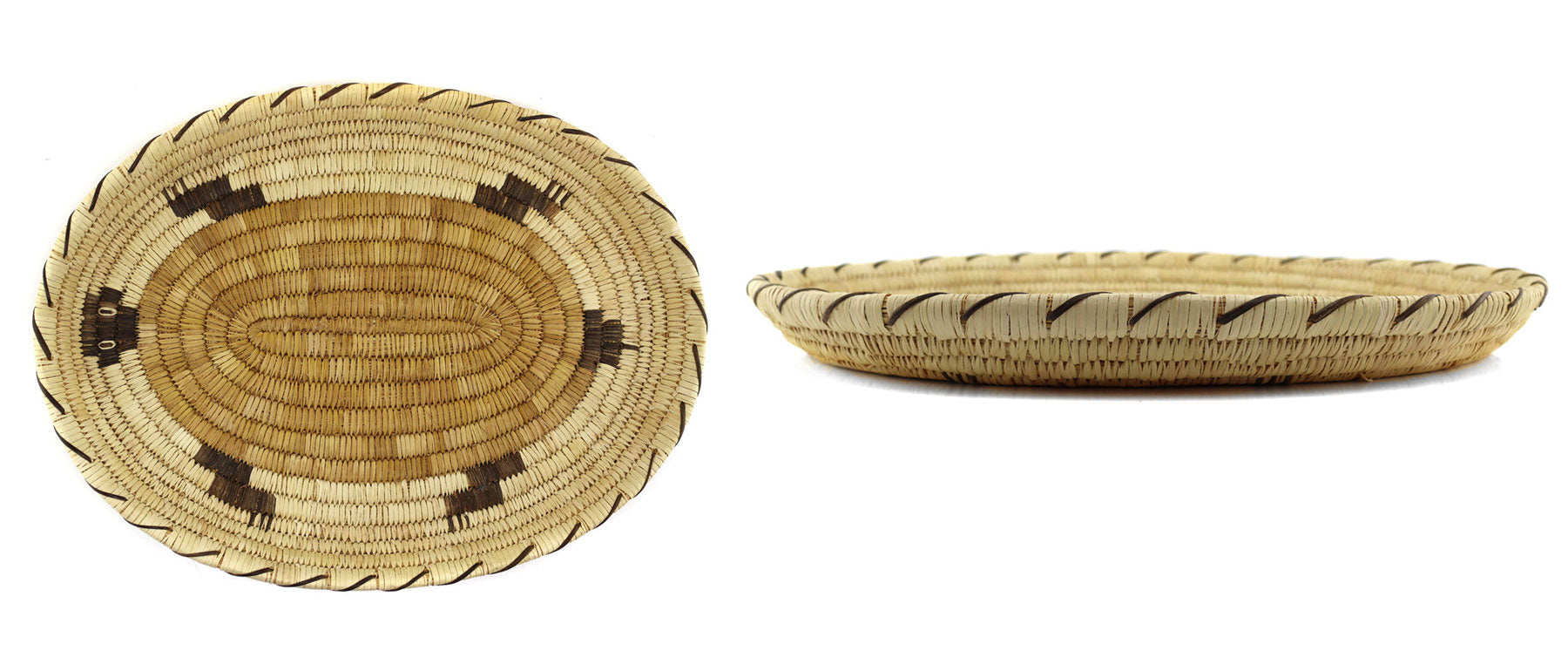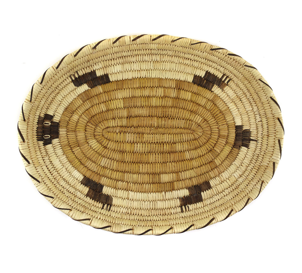 Tohono O'odham Polychrome Oval Tray with Turtle Pictorial c. 1960s, 1.5" x 17.25" x 12.75"