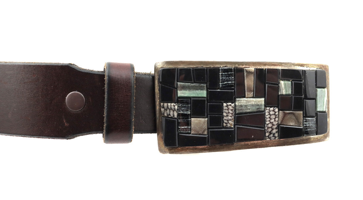 Tommy Jackson (b. 1958) - Navajo Multi-Stone Cobble Inlay, Silver, and Leather Belt c. 1970s, 37" x 40" waist (J14481)
