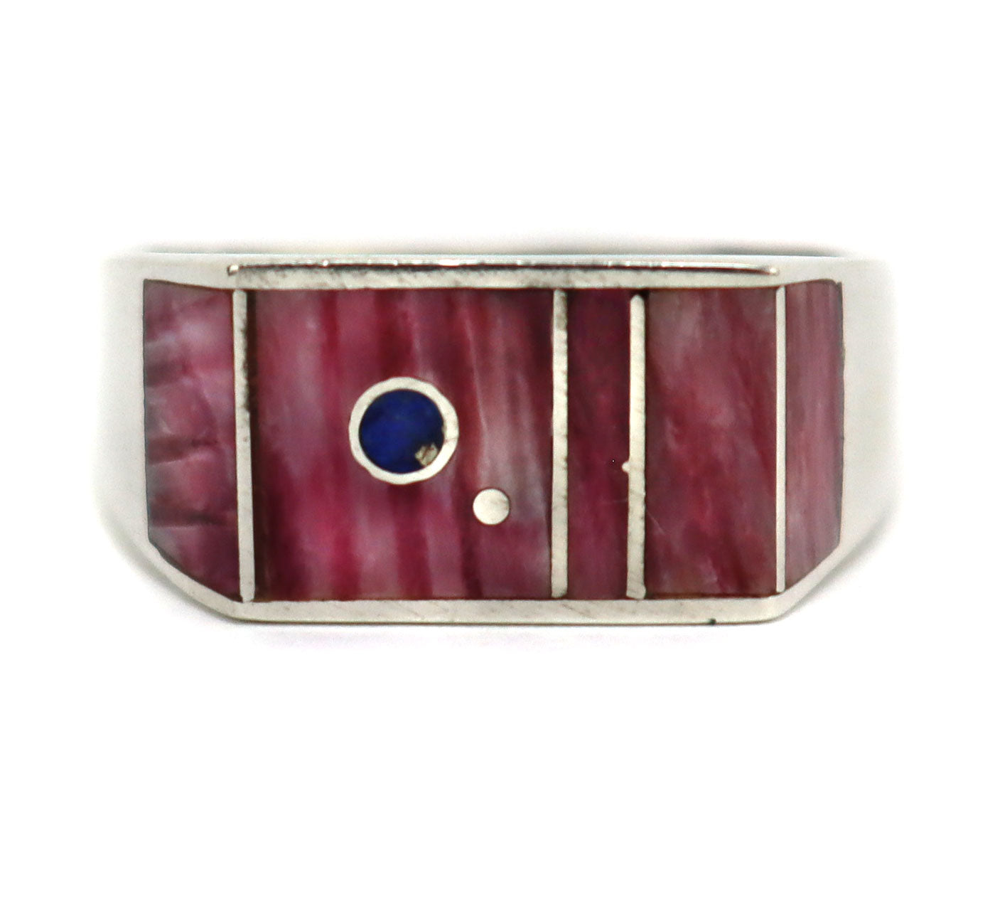 Veronica Benally - Navajo - Contemporary Spiny Oyster and Lapis Lazuli Channel Inlay and Sterling Silver Ring, size 6.75