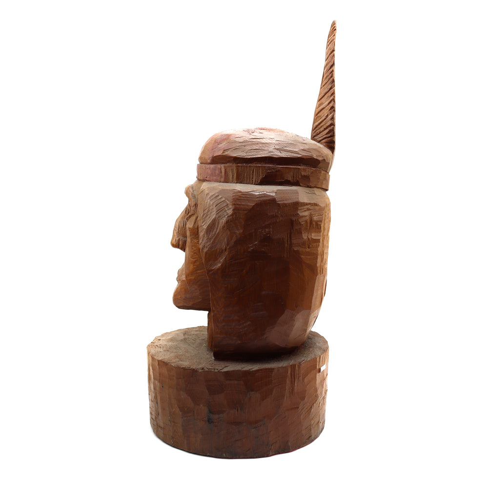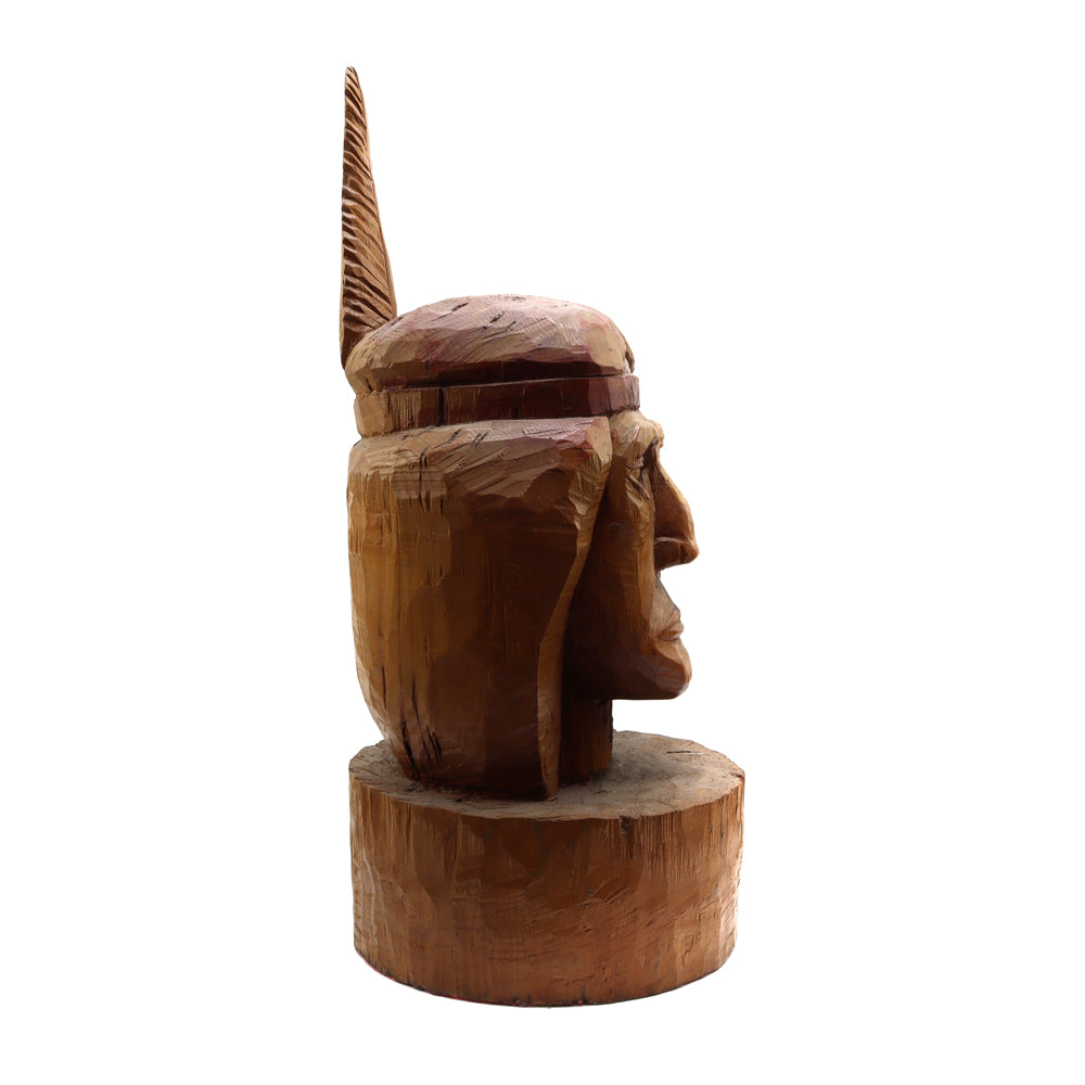 Thelma Finley Smith and Jim Pugh - Carved Wooden Indian Bust c. 1960s, 24.5" x 14.5" x 7.5" (M1948A-107-002)