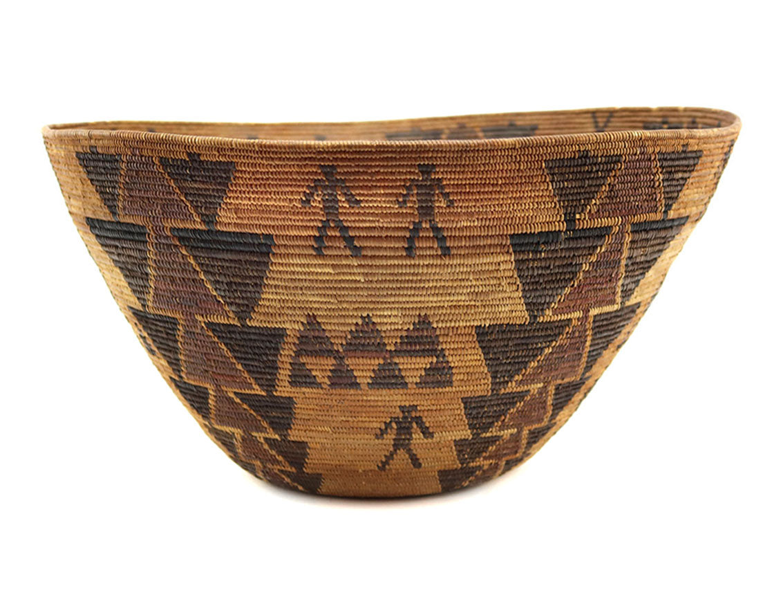 Yokuts Polychrome Basket c. 1890s, 8.25" x 16.25"
