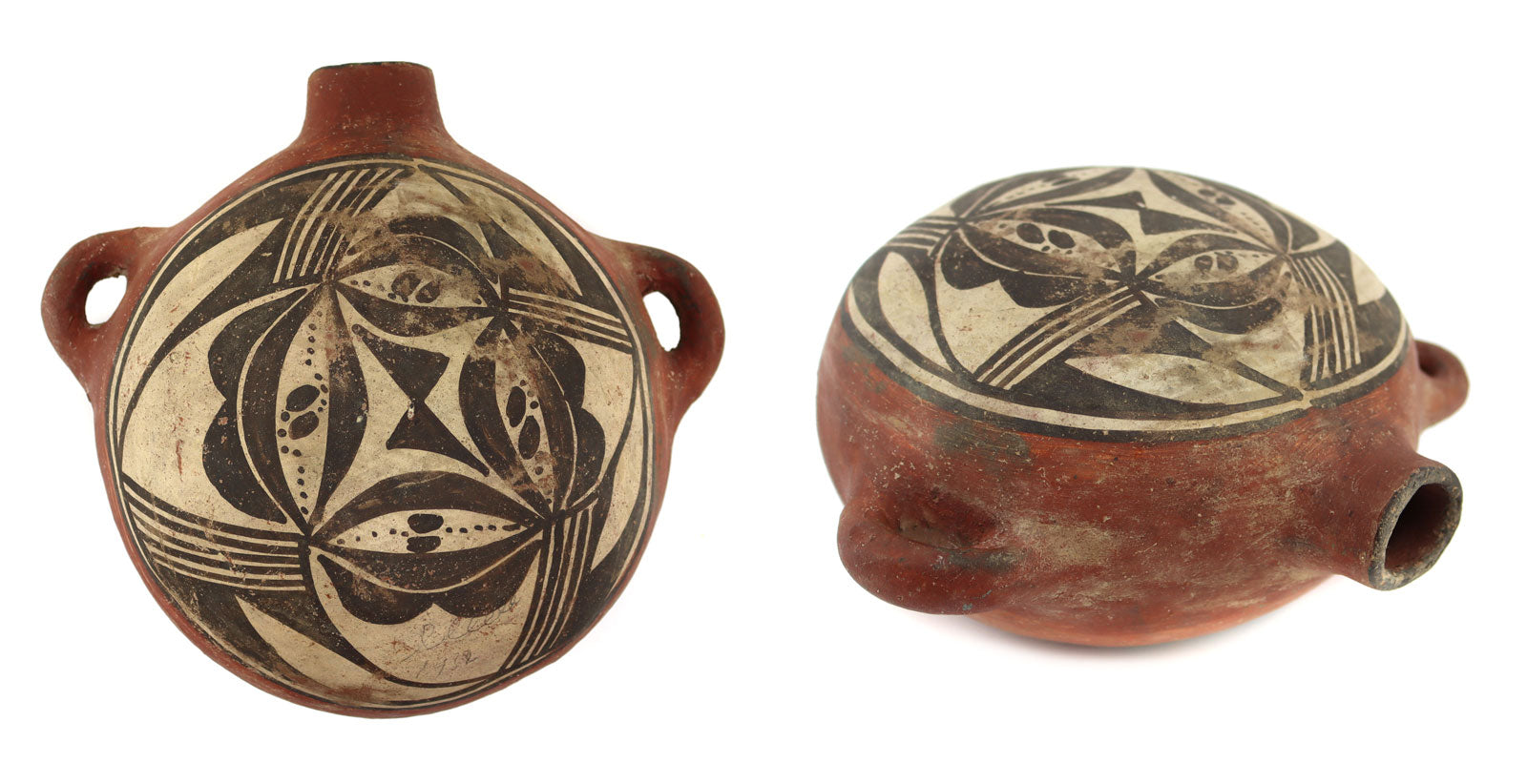 Zia Polychrome Canteen c. 1900s, 4.5" x 8" x 7.5"