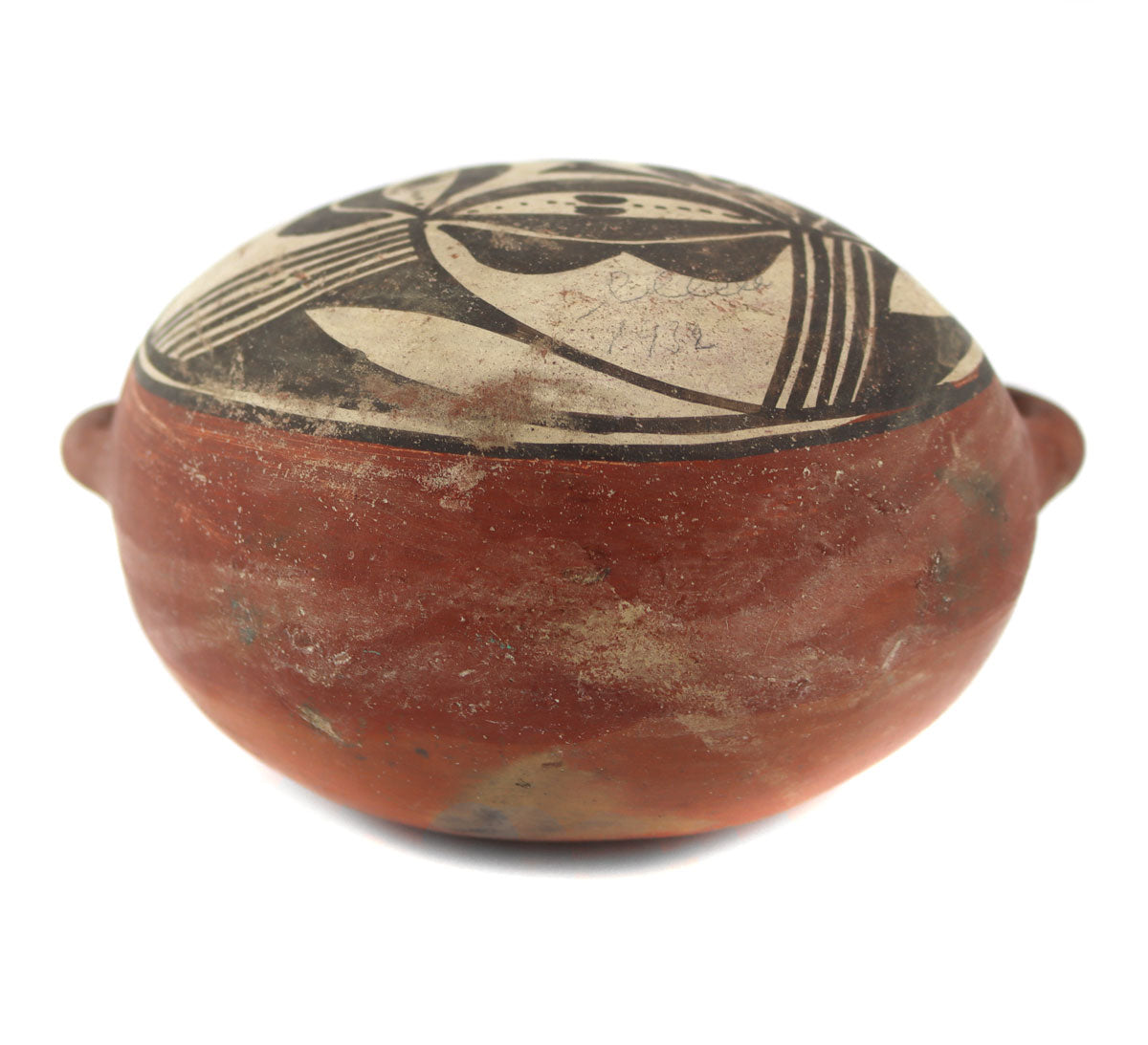 This pottery is in good condition. There are areas with fire clouds, craquelure, and surface wear. Ex Pennsylvania collection.