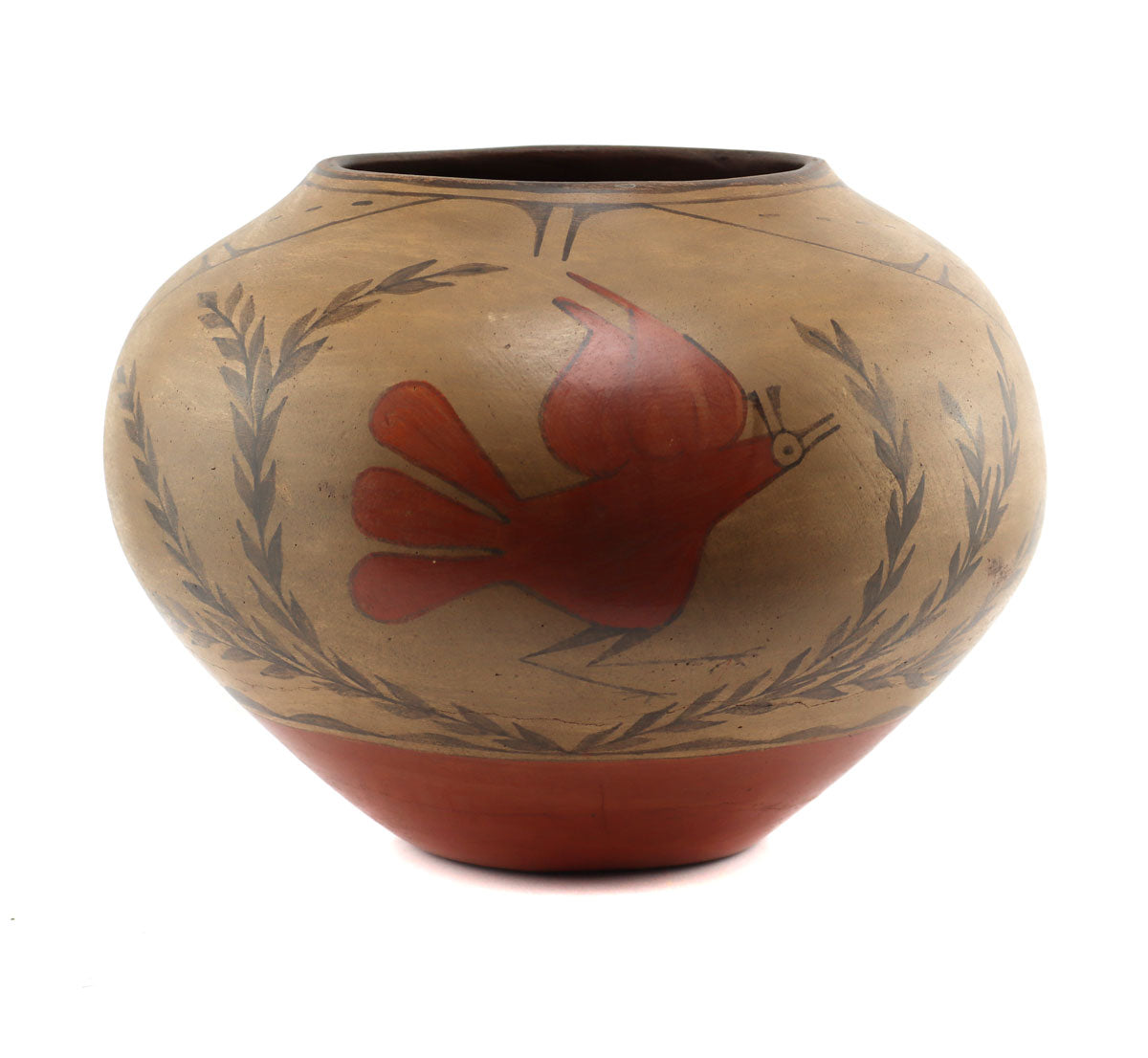 Zia Polychrome Jar with Rainbird Design c. 1910-20s, 12" x 15.5"