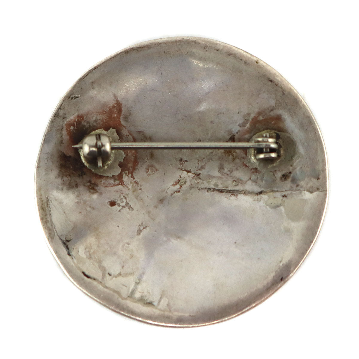 Zuni - Mother of Pearl and Turquoise Channel Inlay and Silver Pin c. 1940-50s, 1.5" diameter