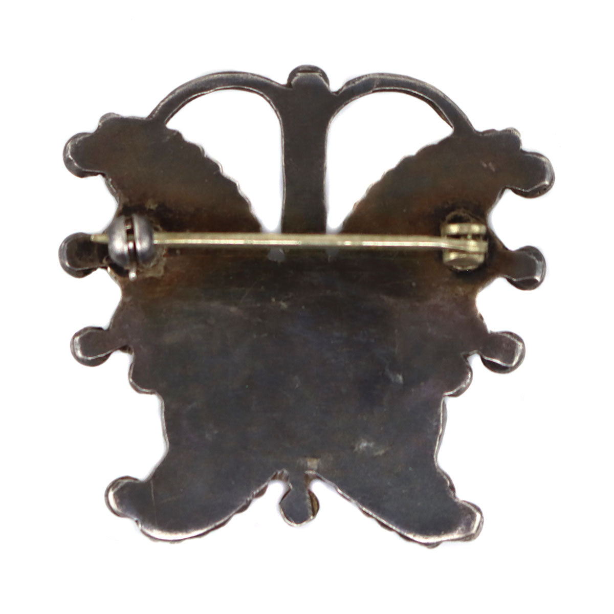Zuni - Multi-Stone Inlay and Silver Butterfly Pin c. 1930-40s, 1.5" x 1.5"