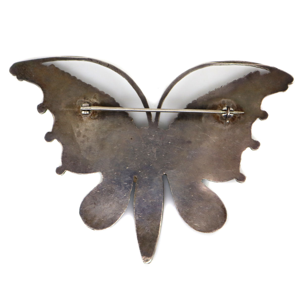 Zuni - Multi-Stone Inlay and Silver Butterfly Pin c. 1930-40s, 2.25" x 3.125"