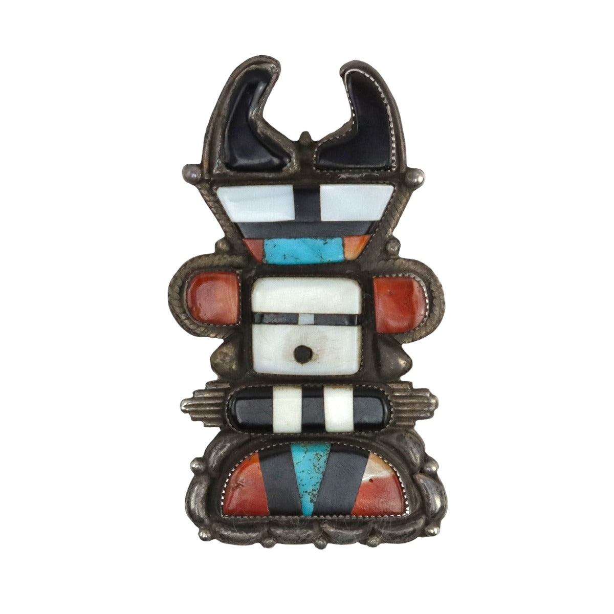 Zuni Multi-Stone Inlay and Silver Kachina Pin/Pendant c. 1940s, 2.5" x 1.25" (J15076-CO-008)