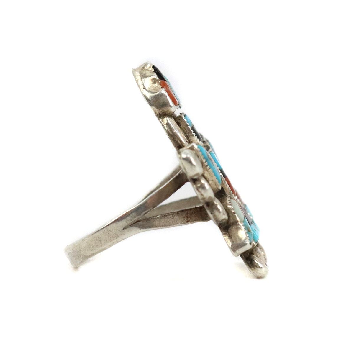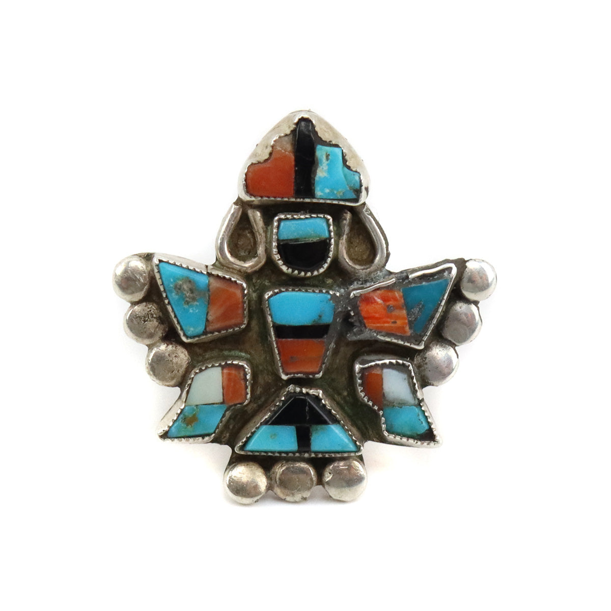 Zuni Multi-Stone Ring with Knifewing God Design c. 1940-50s, size 6.25 (J15265)
