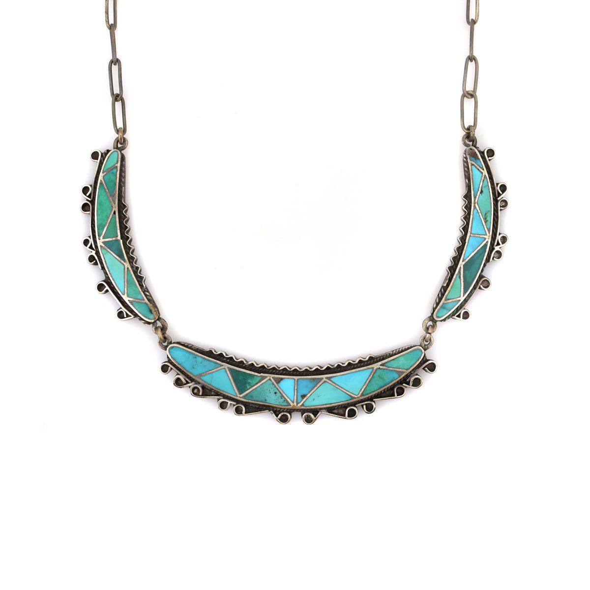 Zuni Turquoise and Silver Channel Inlay Necklace c. 1940s, 17" length (J91051-0821-001)