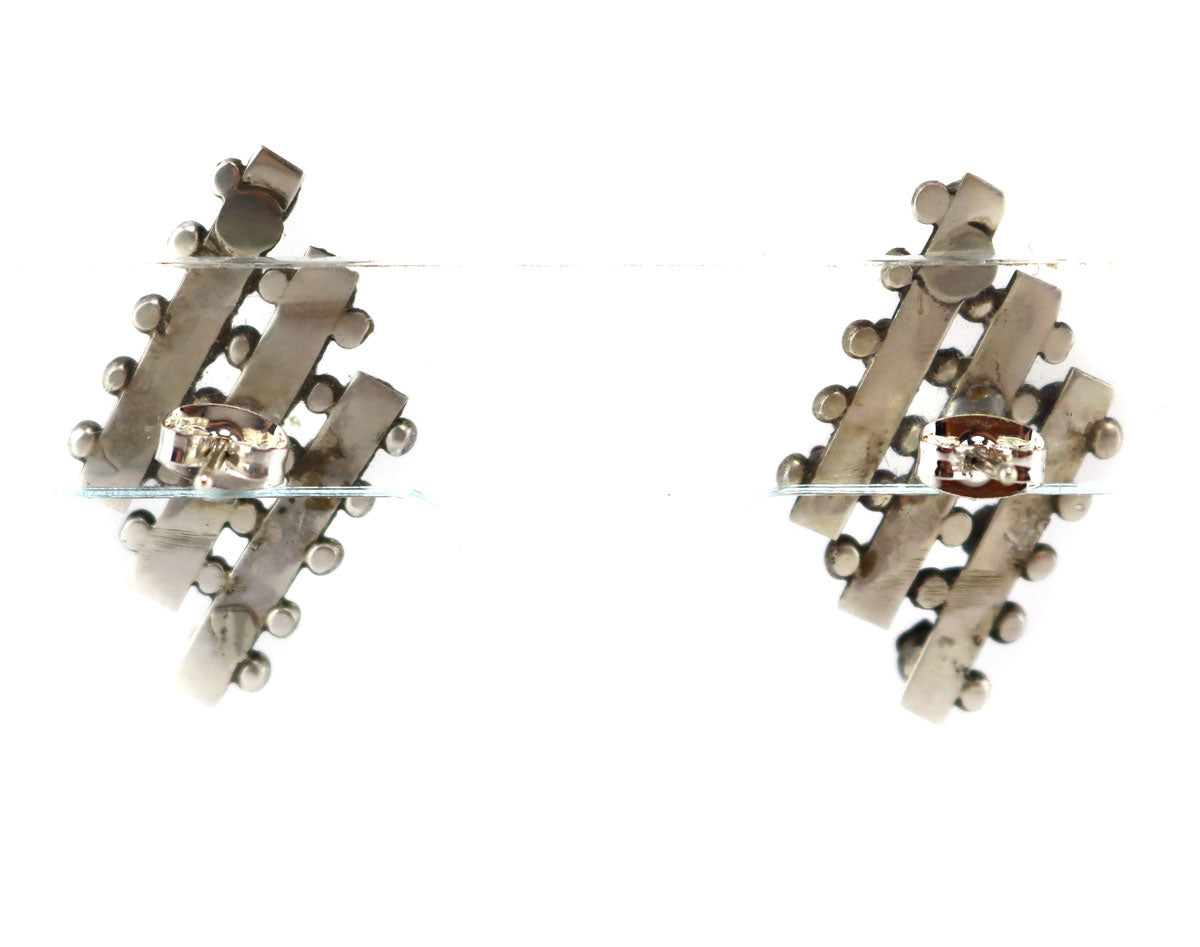 Zuni - Turquoise Petit Point and Silver Post Earrings c. 1930-40s, 1.25" x 0.75"